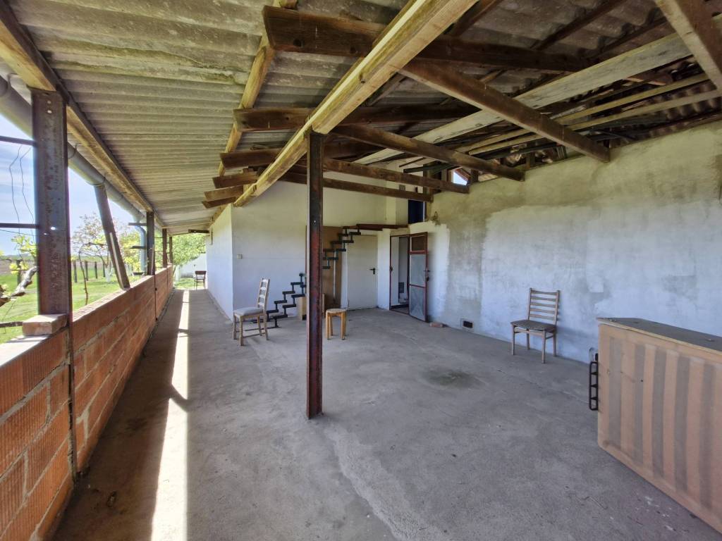 Das Haus besteht aus einem Flur, Küche, Schlafzimmer, Keller, Badezimmer und einem Wohnzimmer mit Zugang zu einer großen Terrasse, die geschlossen werden kann.
