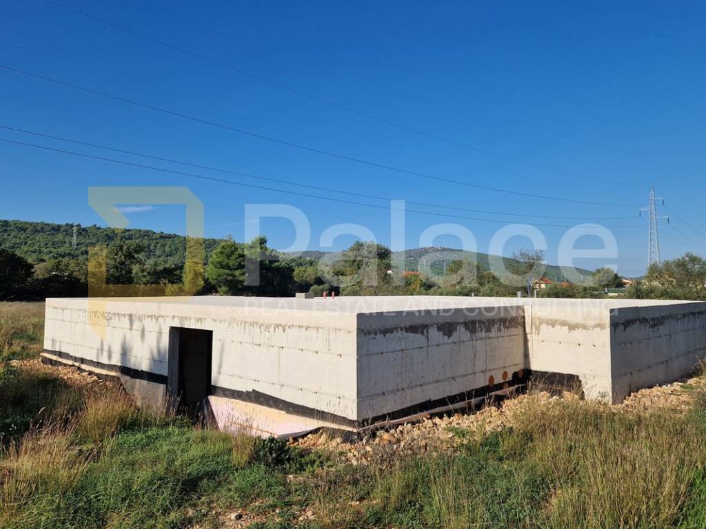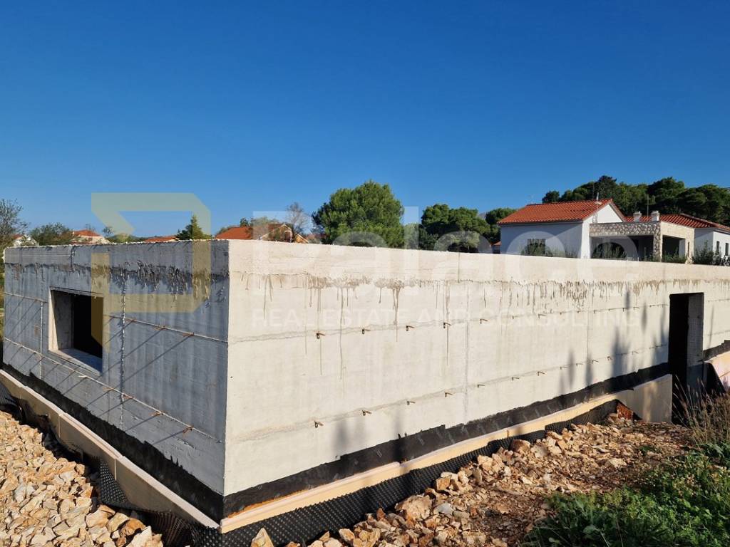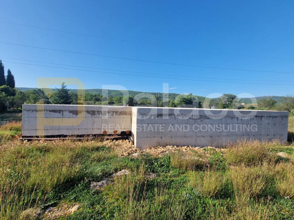 Laut dem Projekt ist ein 95 m2 großes Fertighaus für das Grundstück geplant, bestehend aus drei Schlafzimmern, einem Badezimmer, einem Ankleidezimmer, einer Küche, einem Esszimmer, einem Wohnzimmer und einer Terrasse. Es wurde eine Baugenehmigung erteilt, die eine Sommerküche und einen Pool beinhaltet. Die Fundamente sind fertiggestellt und das Gebäude ist bereit für den Verkauf und die Fortsetzung der Arbeiten.