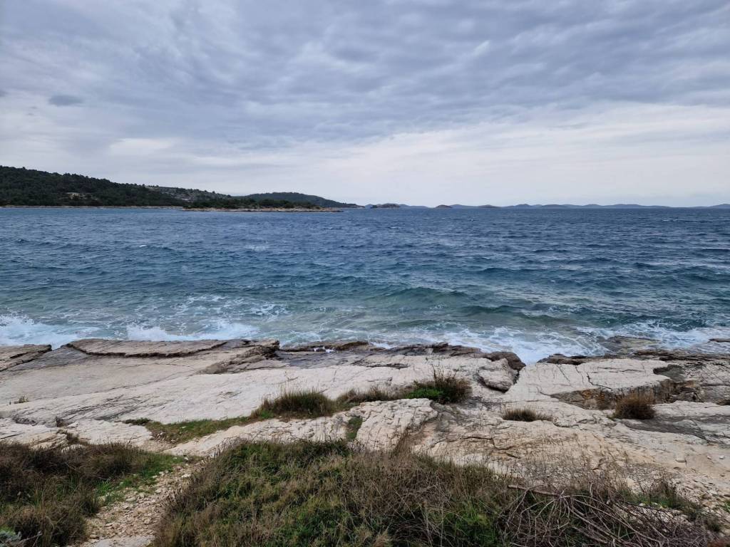 Wunderschönes Grundstück zum Verkauf in der PŠ-Zone (landwirtschaftliches und Waldland) in der Bucht von Kosirina auf der Insel Murter, nur 30 m vom Meer entfernt mit herrlichem Blick auf das Meer und den Kornati-Archipel.