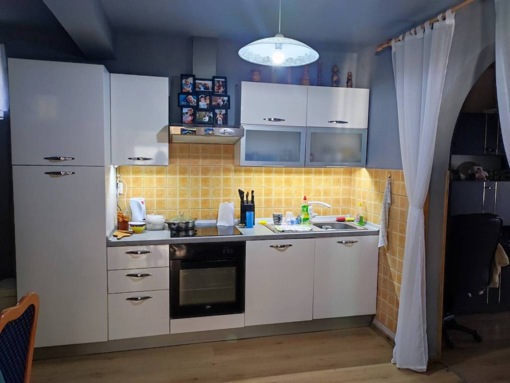 Der zweite Eingang besteht aus einem Flur und einem großen Wohnzimmer mit Esszimmer und Küche (Küchenmöbel im Immobilienpreis inbegriffen) im Erdgeschoss sowie einem Flur, zwei Zimmern und einem Badezimmer im Obergeschoss.