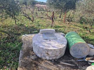 Mit Zufahrtsstraße entlang des gesamten Grundstücks. Auf dem Grundstück befinden sich 13 Olivenbäume und ein alter Weinberg.