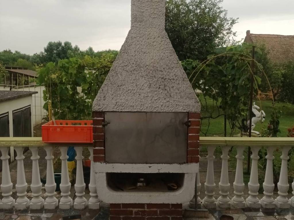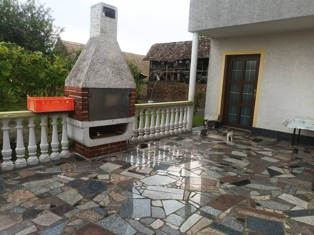 Auf der Hofseite befindet sich eine große Terrasse mit eingebautem Grill, und nur zwei Stufen tiefer befindet sich ein eingebautes Lager für Mülltonnen. Die Hofräumlichkeiten umfassen eine Toilette, eine Werkzeugscheune, Stauraum und einen Platz zum Trocknen von Fleisch. Hinter den Hofräumen befindet sich Ackerland, das sich für den Gemüseanbau eignet. Im Hof sind Apfelbäume, Pflaumen, Kirschen und Sauerkirschen gepflanzt, die von der fleißigen und tüchtigen Besitzerin mit besonderer Aufmerksamkeit, Willen und Liebe gepflegt werden.