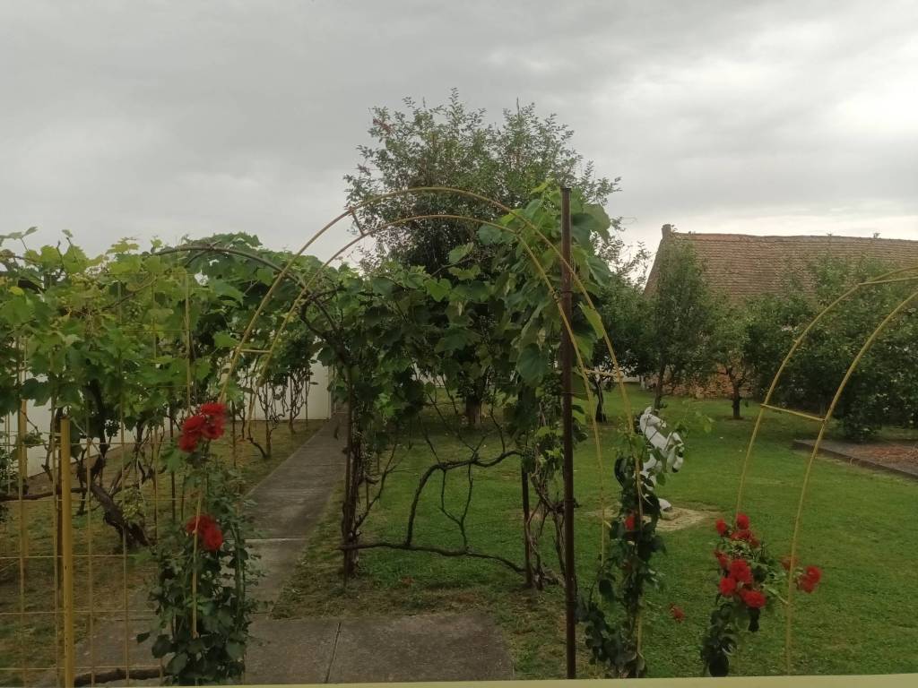 Eine asphaltierte Straße führt uns durch eine romantische Pergola, an der niemand gleichgültig vorbeikommt. Der Hof ist landschaftlich gestaltet, gepflegt und geräumig und eignet sich für junge Familien oder große Familientreffen. Ein Teil davon ist betoniert für die Zufahrt von Autos oder einen potenziellen Garagenplatz.