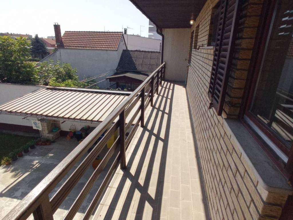 Der erste Teil des Hauses besteht aus einem geräumigen, möblierten Keller. Der Keller umfasst ein vollständig eingerichtetes Wohnzimmer, eine Toilette, eine Küche, einen Flur und einen Lagerraum. Der Geschäftsbereich, eine Toilette und eine Garage befinden sich im Erdgeschoss und haben insgesamt 110m2. Schöne Holztreppen führen in den ersten Stock. Im ersten Stock befinden sich ein Wohnzimmer, ein Badezimmer und zwei möblierte Schlafzimmer, jedes mit Zugang zu einem Balkon, der sich über die gesamte Länge des Hauses erstreckt. Vom Balkon aus hat man einen Blick auf den zweiten Teil des Hauses, den angelegten Garten, den Grill und den Carport. Das Haus umfasst auch einen Dachboden, der über eine möblierte Holztreppe erreichbar ist. Der Dachboden ist mit Strom-, Wasser- und Internetanschlüssen ausgestattet. Zum ersten Teil des Hauses gehört ein angelegter, asphaltierter Innenhof von 120m2, auf dem vom Hausinneren aus Parkplätze erreichbar sind. Der Innenhof verfügt über einen eingebauten Grill, einen praktischen Lagerraum und eine Markise, die an heißen Sommertagen Schatten spendet.