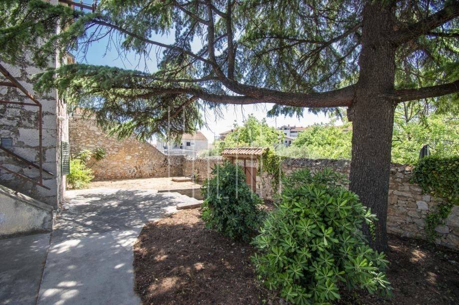Zum Verkauf steht eine wunderschöne Villa mit Garten im Zentrum von Vodice. Dieses besondere historische Anwesen verfügt über ein altes Steinhaus mit einer Fläche von ca. 180 m2, mit einem Erdgeschoss, erstem Stock und hohem Dachgeschoss. Das Erdgeschoss enthält eine Wohneinheit. Der erste Stock ist über eine Innentreppe mit dem Dachgeschoss verbunden. Externe Treppen führen Sie in den ersten Stock. Dieses historische Haus ist auf einen großzügigen Hof oder den ehemaligen historischen Garten ausgerichtet.