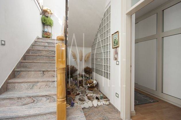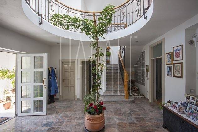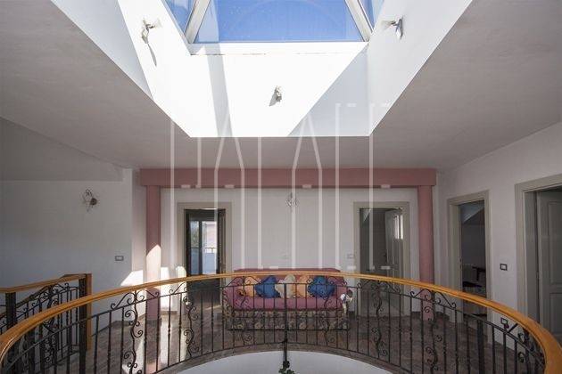 Im zentralen Foyer, gegenüber dem Haupteingang, befindet sich ein offener Luftraum mit Glasdach, der der Villa ein Gefühl von Raum und Licht verleiht.