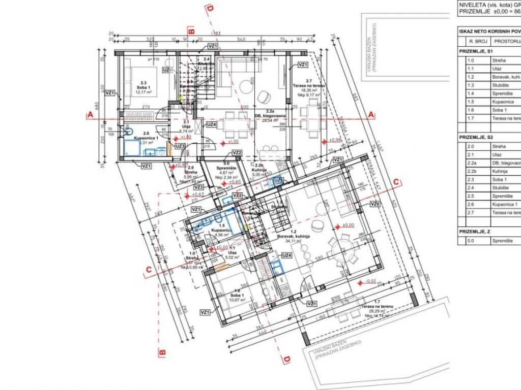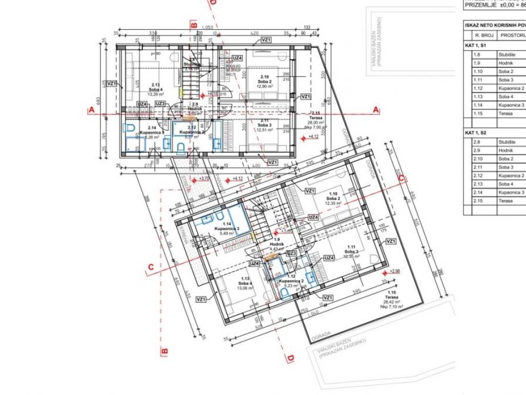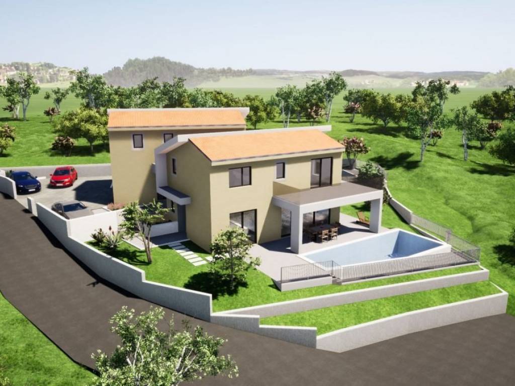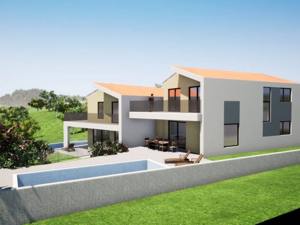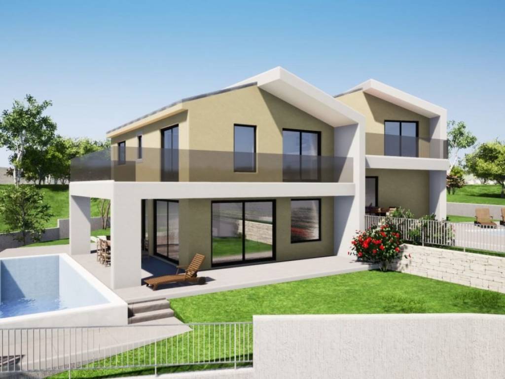 Otok Krk, Vrbnik! Građevinsko zemljište površine 800 m2 nalazi se u mirnom predjelu, 600 m od mora u Vrbniku. Za zemljište je ishodovana pravomoćna građevinska dozvola za gradnju dvojne kuće sa dva bazena, te plaćen komunalni doprinos. Sva potrebna infrastuktura je u neposrednoj blizini, te se sa gradnjom može krenuti odmah. Odlična lokacija sa pogledom na more!