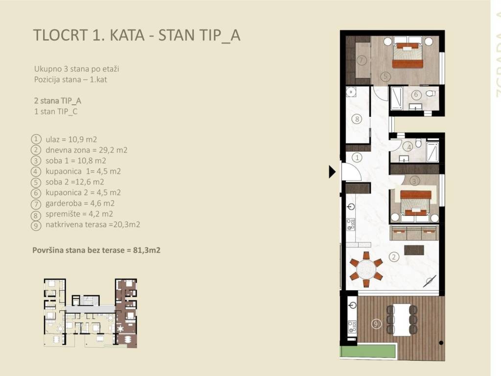 Erleben Sie modernes Wohnen vom Feinsten mit diesem wunderschön gestalteten Apartment im ersten Stock eines eleganten Gebäudes mit Aufzug. Treten Sie ein und entdecken Sie einen großzügigen Grundriss von 81,3 m2, bestehend aus einer Eingangshalle, zwei Schlafzimmern, eines davon en-suite, separaten Badezimmern, Abstellraum, Küche und Wohnzimmer mit Zugang zu einer überdachten Terrasse von 20,3 m2.