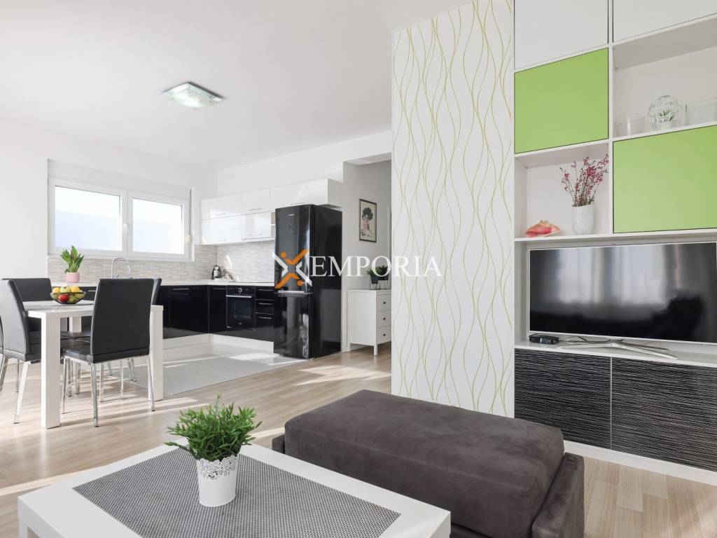 Das Haus wurde mit einem gemauerten Wärmeblock gebaut und hat eine 10 cm dicke Wärmedämmung. Fenster mit Rollläden und Moskitonetzen sind aus PVC-Material. Der Energieausweis ist A. Die Böden sind mit Fliesen und Laminat ausgelegt. Jedes Apartment ist mit allen notwendigen Möbeln und Geräten ausgestattet und verfügt über eine Klimaanlage zum Heizen und Kühlen. Das Haus hat einen Schornstein. Der Hof ist schön angelegt. Der Pool von 32m2 ist mit Folie bedeckt, hat eine Heizung und hat geräumiges Sonnendeck.