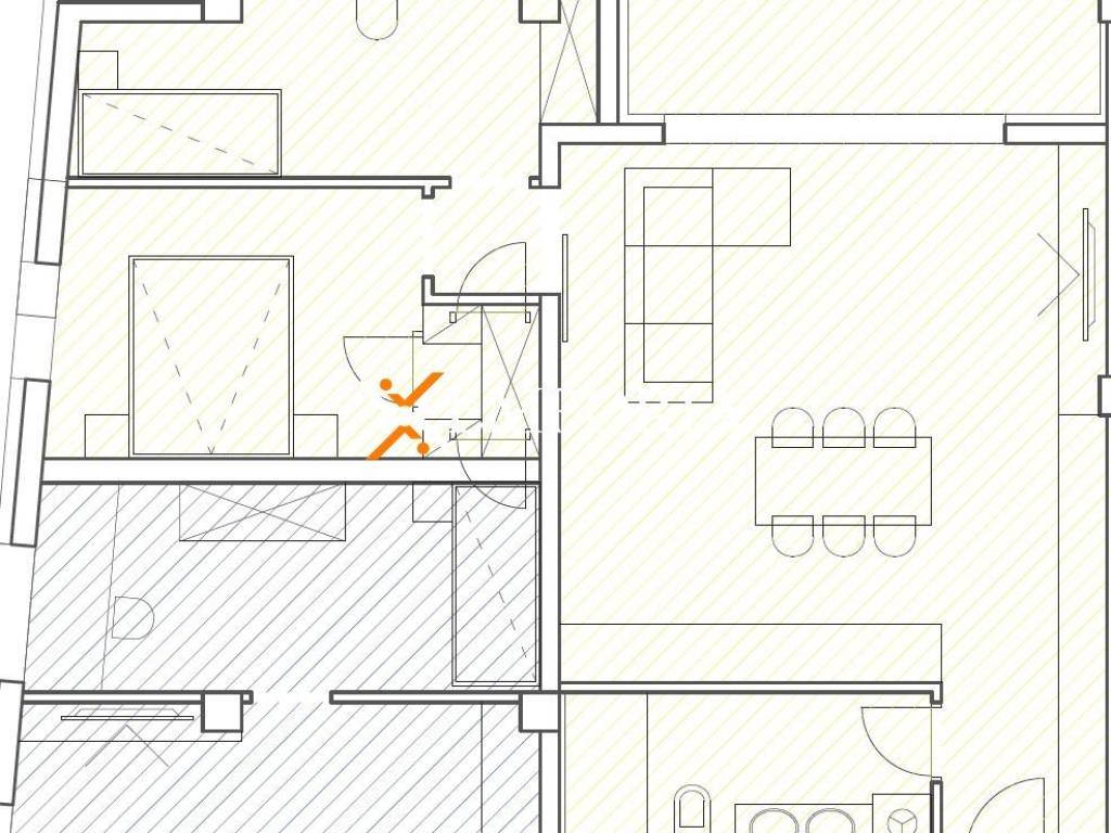 Bau mit einer Betonwand. Wärmedämmung des Gebäudes mit 10 cm dicker Wolle. Die Bodenbeläge sind Fliesen und Parkett. Die Fenster bestehen aus PVC-Material mit Dreischichtglas, elektrischen Rollläden und Moskitonetzen. In allen Räumen außer den Schlafzimmern ist eine elektrische Fußbodenheizung installiert. Die Eingangstür der Wohnung ist einbruchhemmend und feuerbeständig. Wohn- und Schlafzimmer sind klimatisiert.