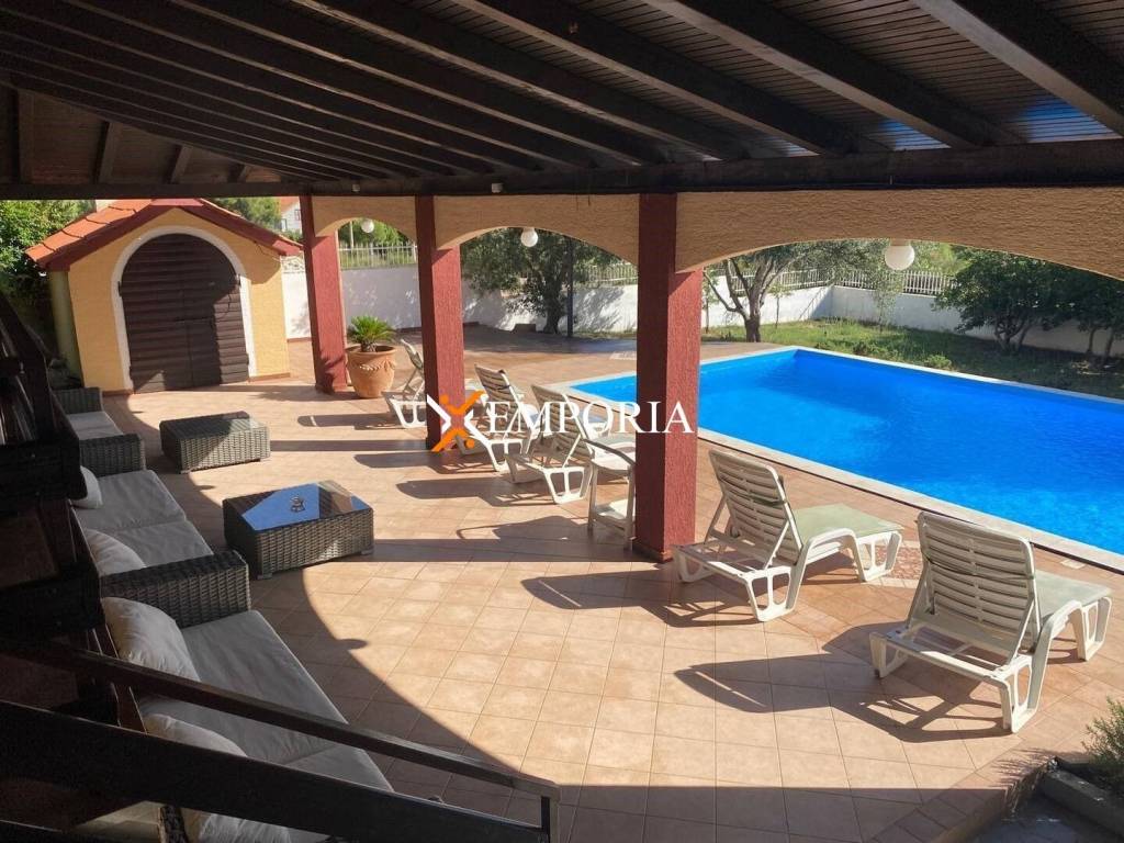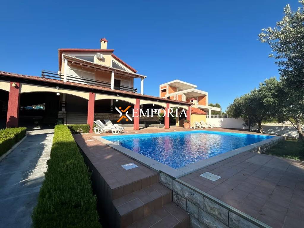 Zum Verkauf steht ein großzügiges, möbliertes Haus mit Pool in ruhiger Lage in Zadar, im Stadtteil Ploča. Die Gesamtfläche der Immobilie beträgt 452,85 m2, einschließlich eines etwa 45 m2 großen Pools, und befindet sich auf einem Grundstück von 957 m2. Das Haus bietet einen ausgezeichneten Meerblick und ist bezugsfertig.