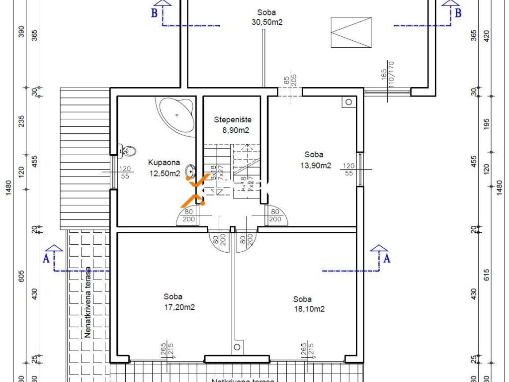 Das Haus erstreckt sich über vier Etagen: Keller, Erdgeschoss, Obergeschoss und Dachgeschoss. Der Keller dient derzeit als Abstellraum, wurde jedoch so gestaltet, dass er auch als traditionelle Konoba genutzt werden könnte.