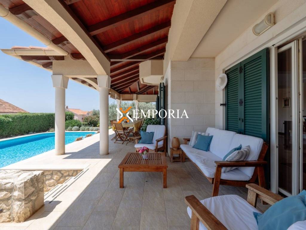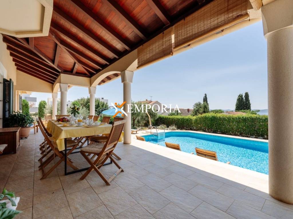 Zum Verkauf steht ein großzügiges Haus mit Pool in Kožino bei Zadar, nur 170 m vom Meer und 600 m vom Ortszentrum entfernt. Das Haus befindet sich auf einem Grundstück von 1.451 m² und erstreckt sich über drei Etagen – Keller, Erdgeschoss und Dachgeschoss – mit einer Gesamtfläche von 810,08 m². Ein besonderes Highlight ist der 72 m² große Pool mit keramischem Mosaik, für den eine Vorbereitung zur Beheizung besteht, sowie der herrliche Meerblick vom ersten Stock.