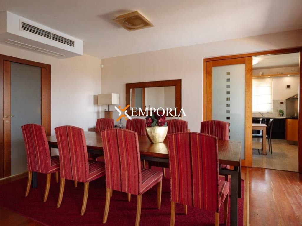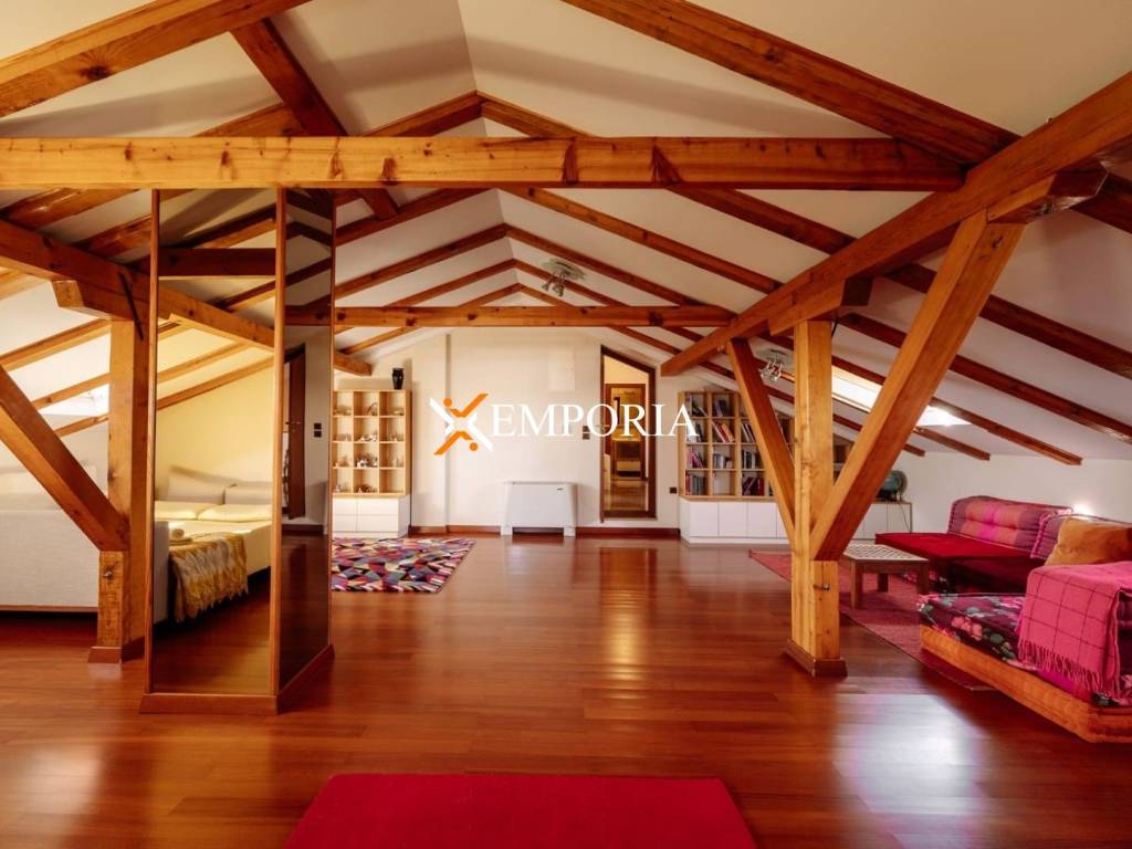 Im Keller befinden sich eine Garage für drei Autos, ein Fitnessraum, ein Badezimmer, drei Abstellräume und der Heizraum mit insgesamt 270,95 m². Das Erdgeschoss mit 348,92 m² umfasst einen Flur, zwei Schlafzimmer jeweils mit eigenem Badezimmer, zwei weitere Schlafzimmer, ein zusätzliches Badezimmer, eine Küche mit Essbereich und Wohnzimmer, ein WC, eine Speisekammer sowie eine überdachte Terrasse. Eine Innentreppe führt ins Dachgeschoss mit 190,21 m², wo sich ein Flur, zwei Schlafzimmer, ein Badezimmer, ein Abstellraum, ein großer Raum, der als Wohnzimmer oder zusätzliche Küche genutzt werden kann (alle Installationen sind vorhanden), ein Bereich als Spielzimmer, eine offene Terrasse und eine Loggia befinden.