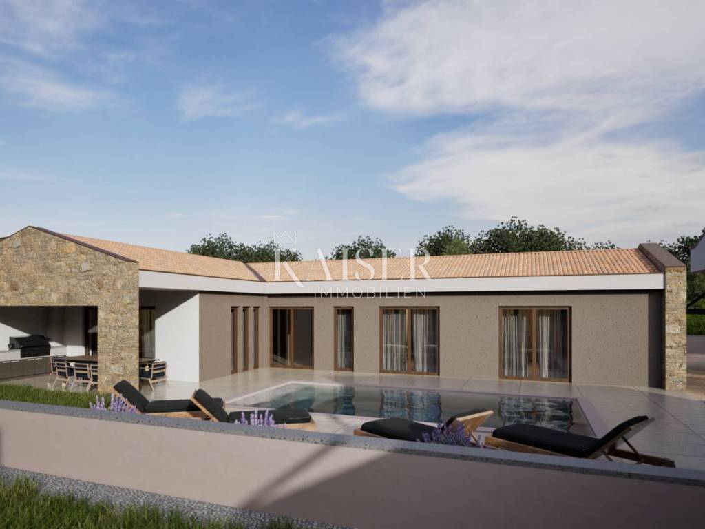 Kaiser Immobilien bietet ein attraktives Neubauobjekt an – ein wunderschönes, ebenerdiges Haus mit Pool in äußerst ruhiger und angenehmer Lage, nur 7 km vom Meer entfernt. Das Anwesen liegt in einer Umgebung, die Privatsphäre, Ruhe und ein authentisches lokales Lebensgefühl bietet und gleichzeitig nur wenige Autominuten von allen Annehmlichkeiten des täglichen Bedarfs (Geschäfte, Schulen, Kindergärten, Cafés) entfernt ist.