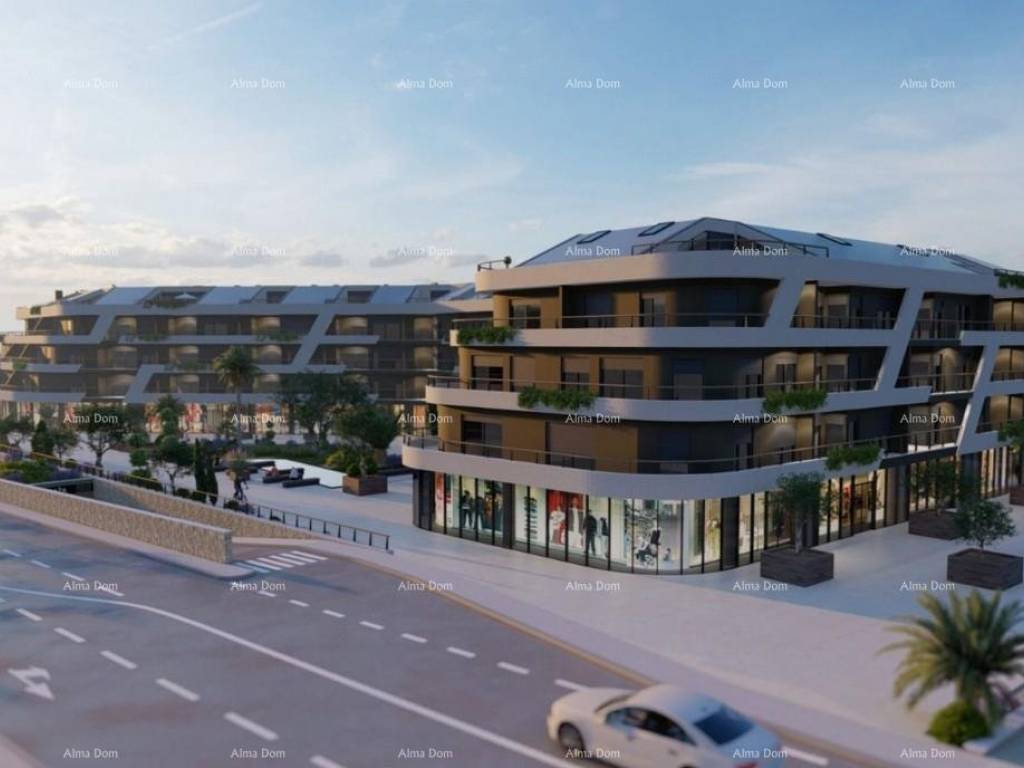 Das Gebäude besteht aus zwei Untergeschossen und drei Obergeschossen mit Galerien. Der Komplex umfasst Tiefgaragen und gesicherte Parkplätze, was zusätzlich zur Wohnqualität und Attraktivität dieses Standorts in einem der am schnellsten wachsenden Touristenzentren in Istrien beiträgt.
