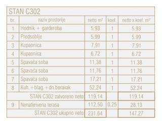 Das Apartment C302 befindet sich im 3. Stock der zentralen Einheit des Gebäudes und besteht aus: