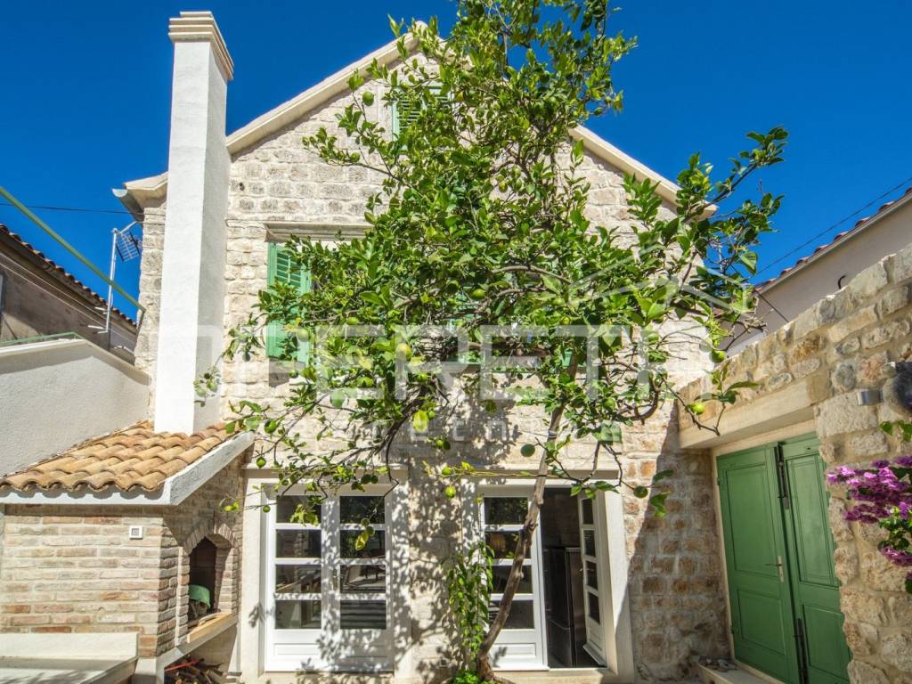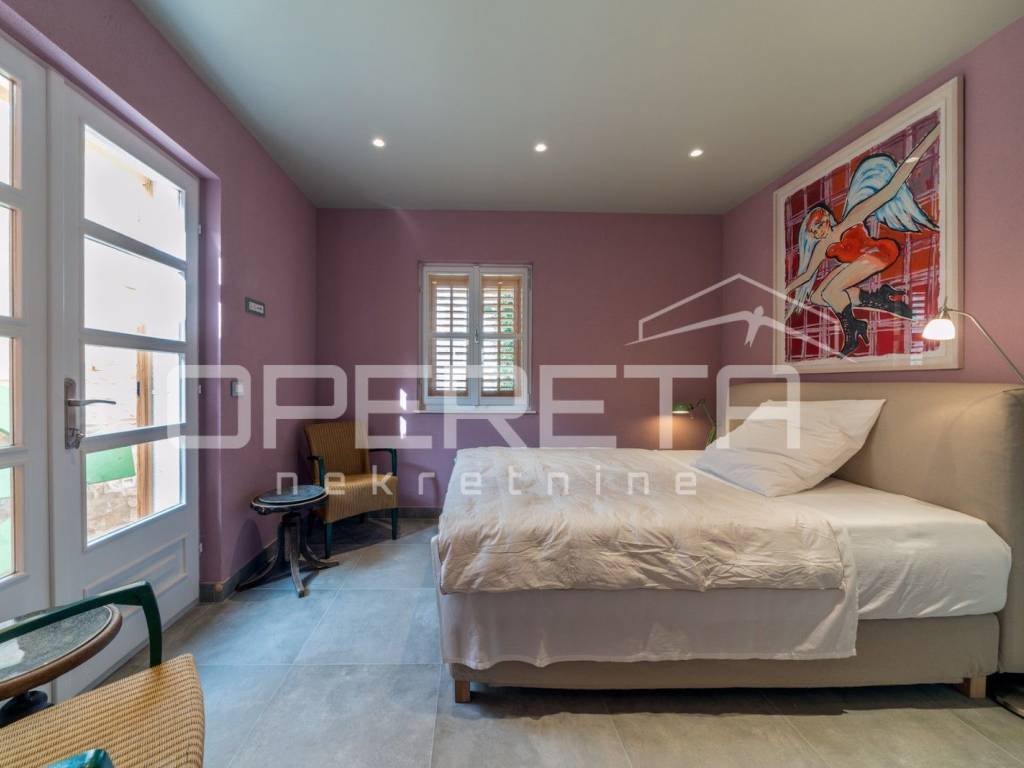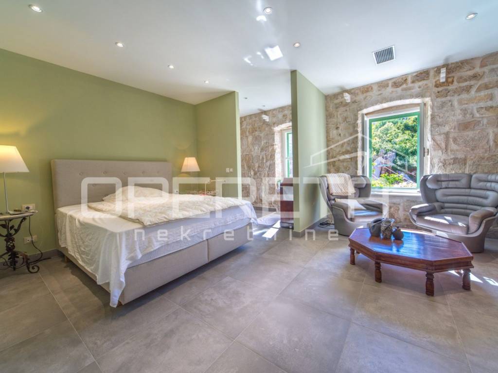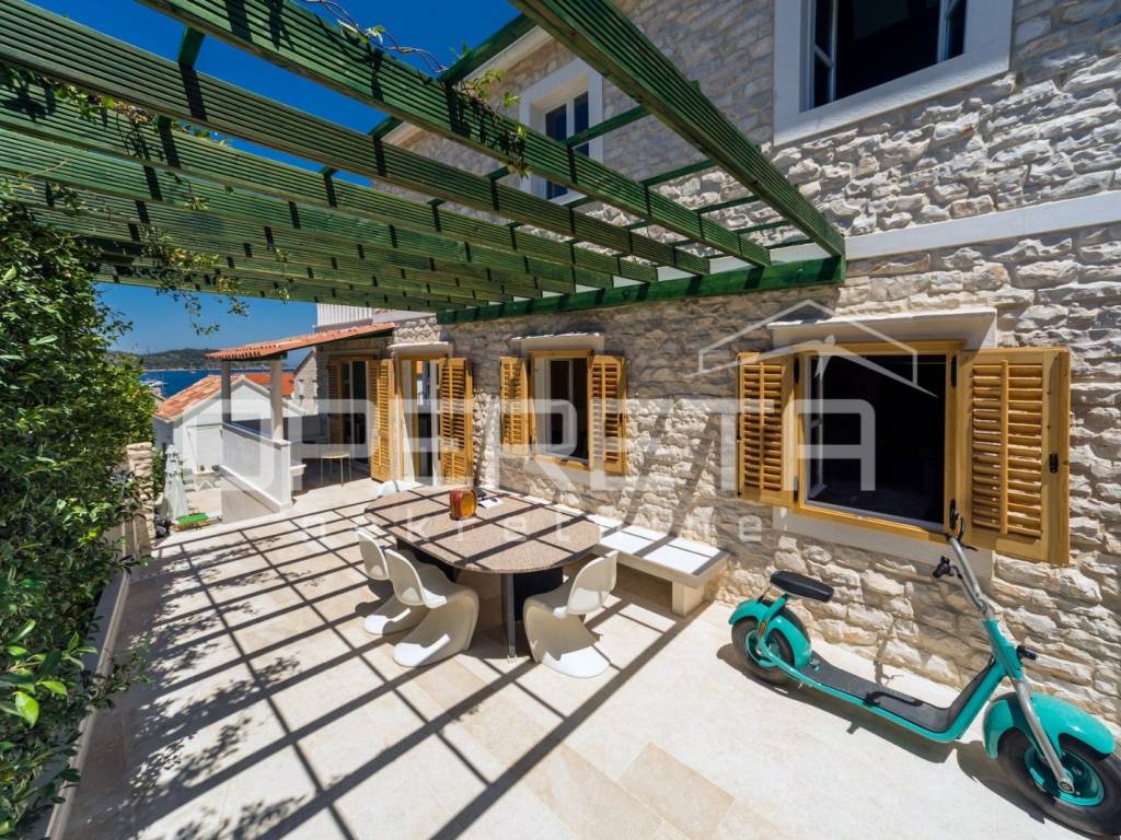 ZU VERKAUFEN, VIS, GRUNDSTÜCK MIT ZWEI LUXUSHÄUSERN UND EINEM SWIMMINGPOOL In unmittelbarer Nähe zum Meer, auf Vis, bieten wir ein Anwesen mit zwei Luxushäusern mit Swimmingpool an. Das erste Haus, mit einer Grundfläche von 112 m2, besteht aus einem Erdgeschoss und einem Obergeschoss. Das Erdgeschoss besteht aus einer voll ausgestatteten Küche mit angeschlossenem geräumigen Wohnzimmer. Im Obergeschoss befinden sich zwei Hauptschlafzimmer mit angeschlossenen Badezimmern. Das zweite Haus, mit einer Grundfläche von 64 m2, besteht aus einer Küche mit angeschlossenem Wohnzimmer. Hinter dem Wohnzimmer befindet sich ein Schlafzimmer mit Badezimmer und einem kleinen privaten Garten. Im Obergeschoss befinden sich zwei Schlafzimmer mit eigenen Bädern. Das Hauptschlafzimmer verfügt über eine Terrasse mit herrlichem Blick über die gesamte Bucht. Zusätzlich ist neben dem Haus ein Abstellraum mit Waschküche vorhanden. Im Hof gibt es einen Swimmingpool, eine Außenküche und einen traditionellen Ofen zum Backen oder Grillen. Neben dem Pool gibt es zwei weitere Zimmer mit eigenem Bad. Weitere Informationen erhalten Sie auf Anfrage. Ausgezeichnete Gelegenheit!