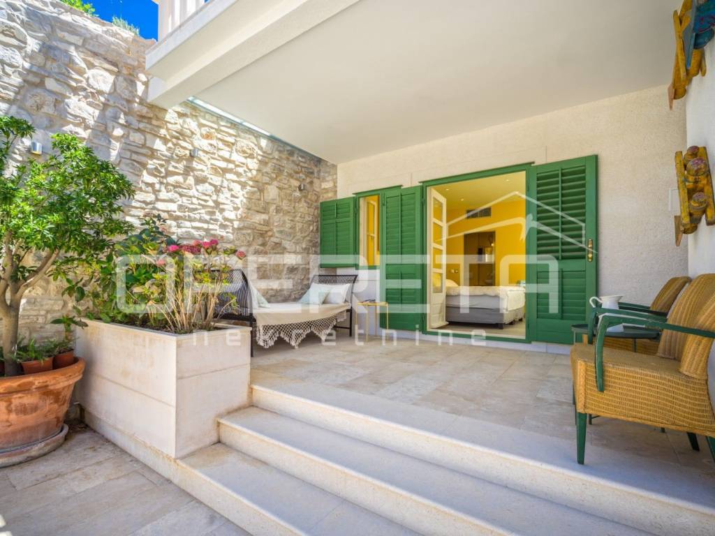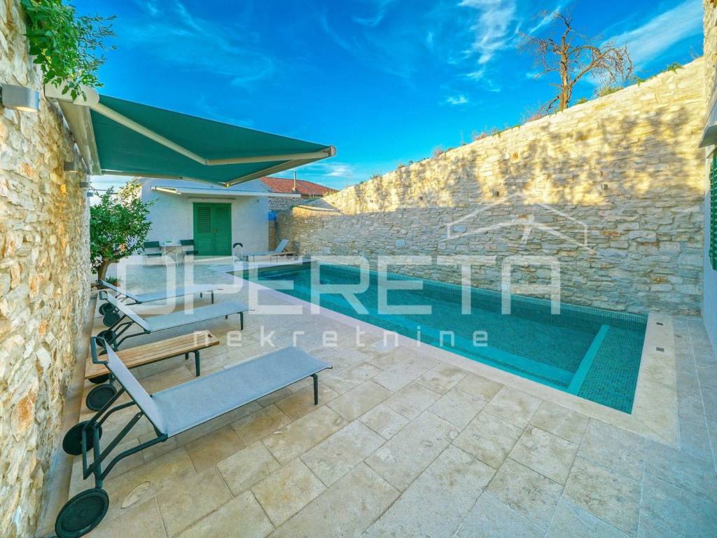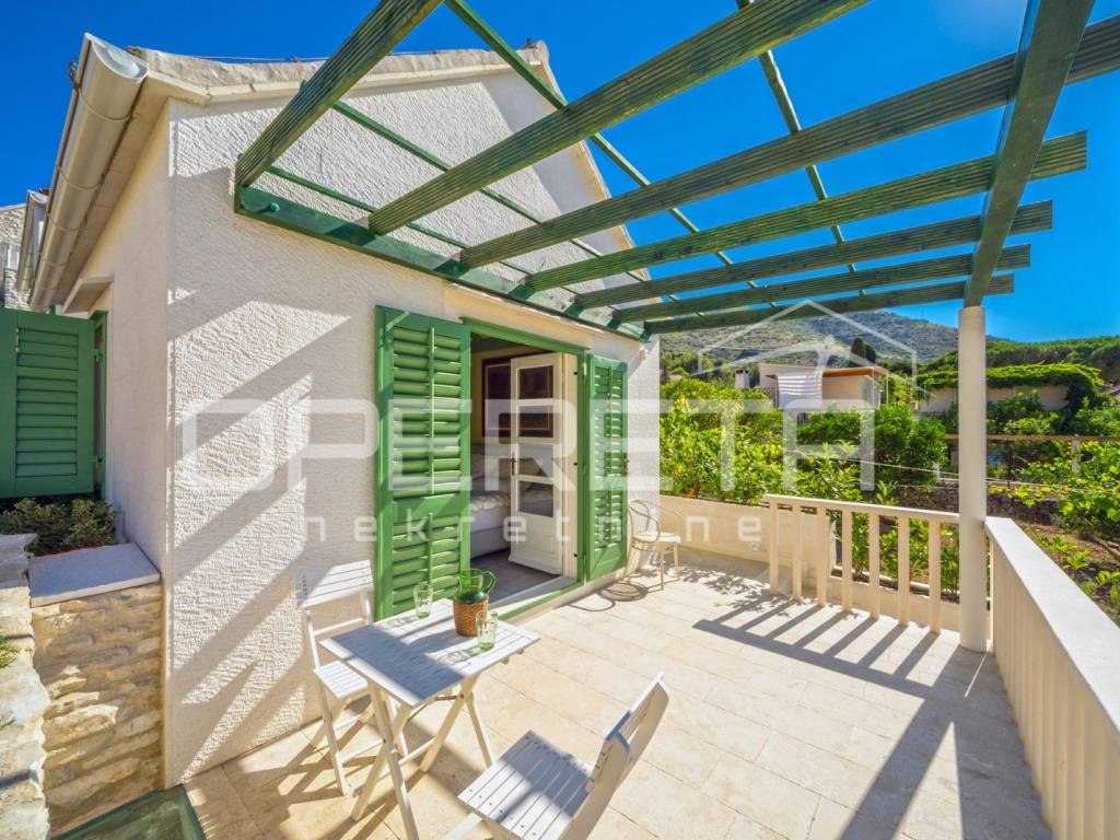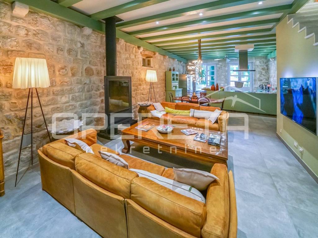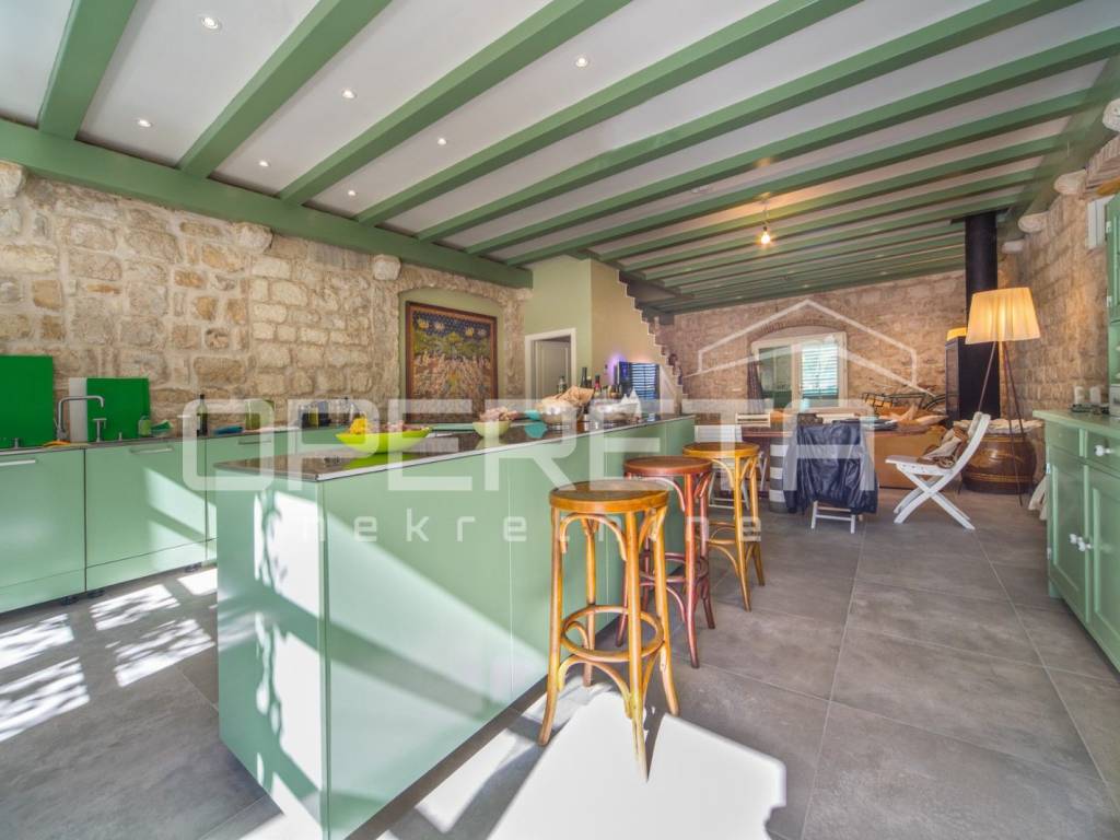 ZU VERKAUFEN, VIS, GRUNDSTÜCK MIT ZWEI LUXUSHÄUSERN UND EINEM SWIMMINGPOOL In unmittelbarer Nähe zum Meer, auf Vis, bieten wir ein Anwesen mit zwei Luxushäusern mit Swimmingpool an. Das erste Haus, mit einer Grundfläche von 112 m2, besteht aus einem Erdgeschoss und einem Obergeschoss. Das Erdgeschoss besteht aus einer voll ausgestatteten Küche mit angeschlossenem geräumigen Wohnzimmer. Im Obergeschoss befinden sich zwei Hauptschlafzimmer mit angeschlossenen Badezimmern. Das zweite Haus, mit einer Grundfläche von 64 m2, besteht aus einer Küche mit angeschlossenem Wohnzimmer. Hinter dem Wohnzimmer befindet sich ein Schlafzimmer mit Badezimmer und einem kleinen privaten Garten. Im Obergeschoss befinden sich zwei Schlafzimmer mit eigenen Bädern. Das Hauptschlafzimmer verfügt über eine Terrasse mit herrlichem Blick über die gesamte Bucht. Zusätzlich ist neben dem Haus ein Abstellraum mit Waschküche vorhanden. Im Hof gibt es einen Swimmingpool, eine Außenküche und einen traditionellen Ofen zum Backen oder Grillen. Neben dem Pool gibt es zwei weitere Zimmer mit eigenem Bad. Weitere Informationen erhalten Sie auf Anfrage. Ausgezeichnete Gelegenheit!