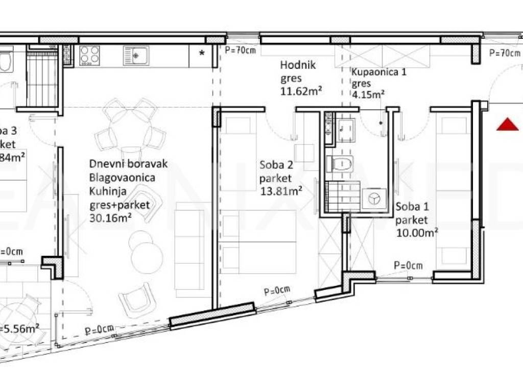 -kuhinje, blagovaonice i dnevnog boravka 30,16 m2