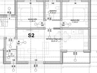 Predmetni stan oznake S2 nalazi se u prizemlju zgrade ukupne površine 83,47 m2. Stan se sastoji od kuhinje, blagovaonice i dnevnog boravka sa izlazom na natkrivenu terasu i VRT (cca. 99,81 m2), hodnika, dvije spavaće sobe te wc-a/praonice. Stanu pripadaju dva vanjska parkirna mjesta.