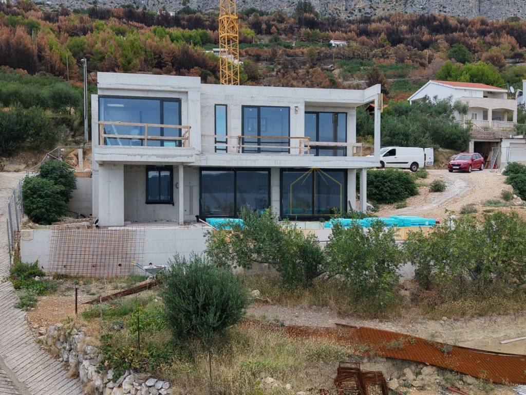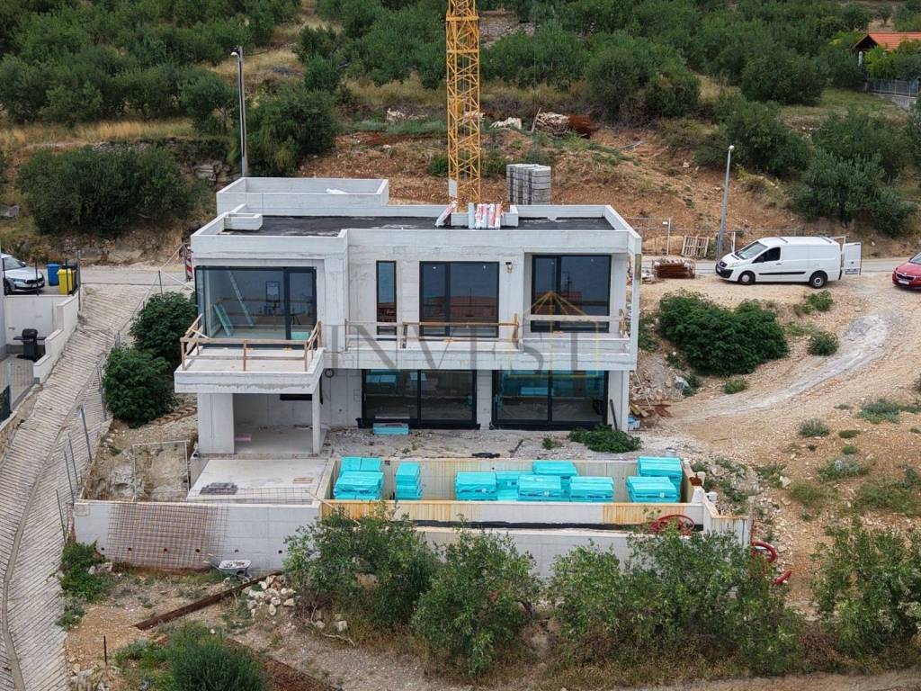 For sale is a modern luxury villa under construction, located in a prime and peaceful location in Krilo Jesenice, just 100 meters from the sea. Thanks to its elevated position and southern orientation, the villa offers spectacular panoramic views of the sea and islands, while large glass walls 3.10 meters high allow for plenty of natural light and a sense of openness.