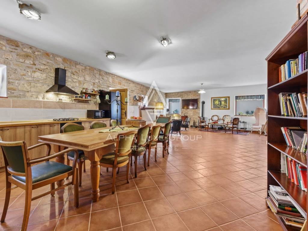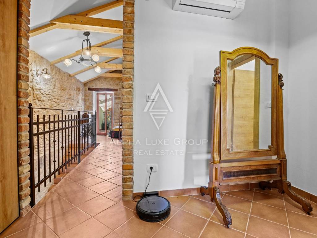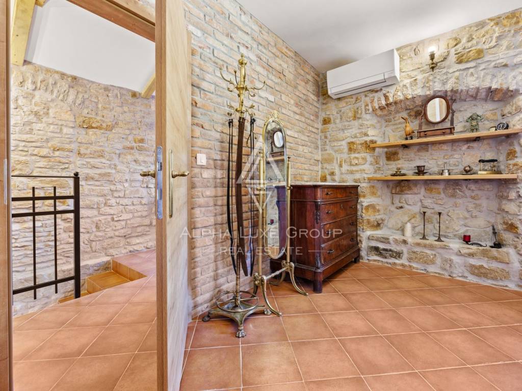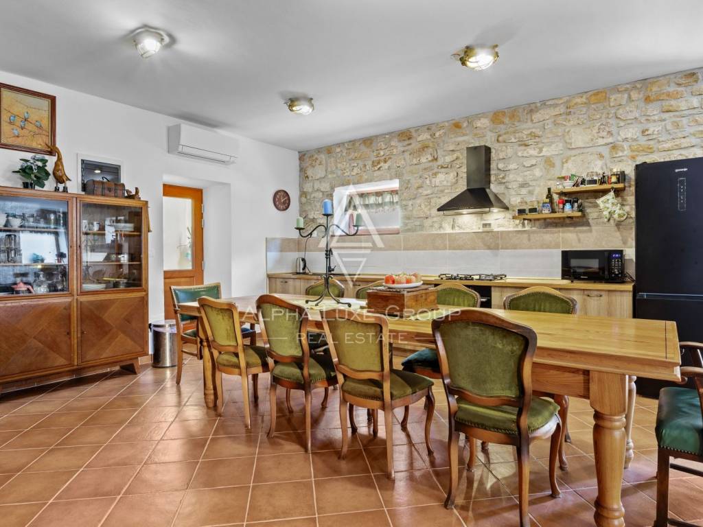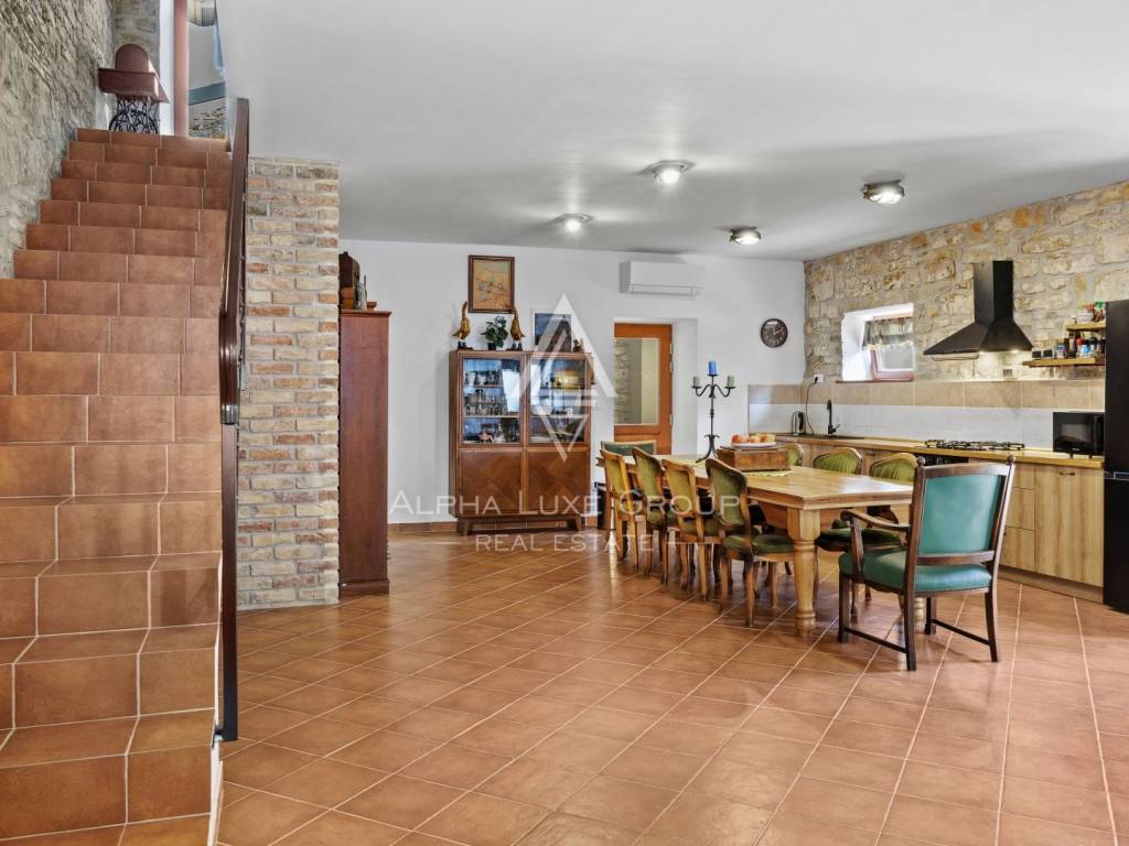 Das Erdgeschoss überzeugt mit einem großzügigen offenen Grundriss, der für traditionelle istrische Häuser eher selten ist, und verbindet einen hellen Wohnbereich, eine moderne Küche und einen großen Essbereich für gesellige Zusammenkünfte. Auf dieser Ebene befinden sich außerdem ein Badezimmer sowie ein vielseitig nutzbarer Raum für Gäste, Homeoffice oder Freizeit.