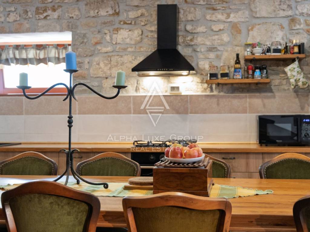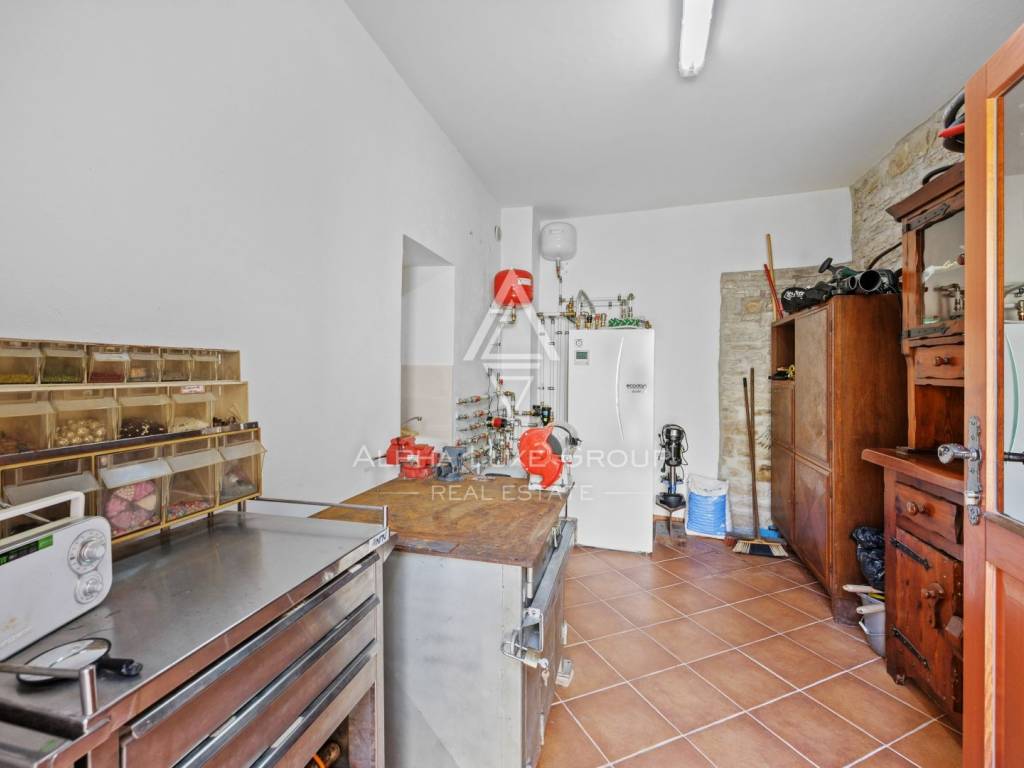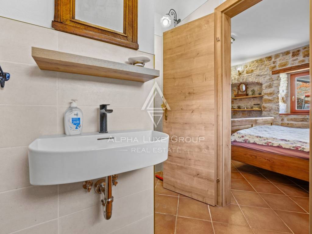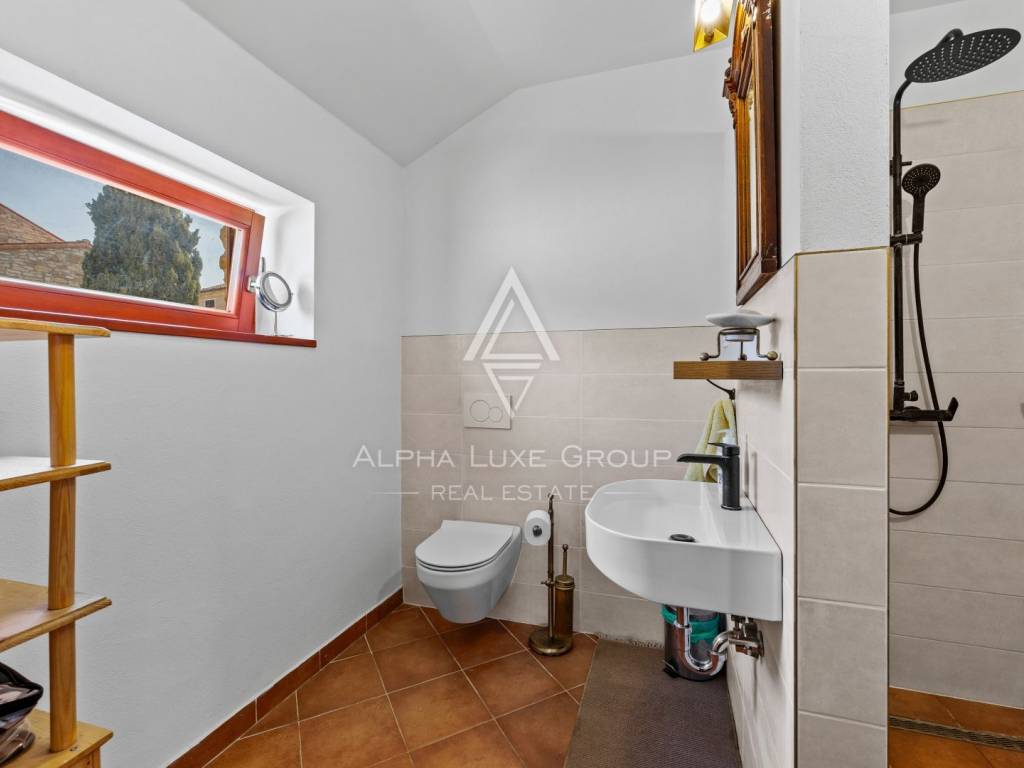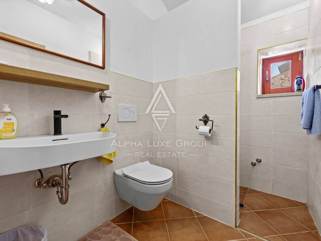 Das Erdgeschoss überzeugt mit einem großzügigen offenen Grundriss, der für traditionelle istrische Häuser eher selten ist, und verbindet einen hellen Wohnbereich, eine moderne Küche und einen großen Essbereich für gesellige Zusammenkünfte. Auf dieser Ebene befinden sich außerdem ein Badezimmer sowie ein vielseitig nutzbarer Raum für Gäste, Homeoffice oder Freizeit.