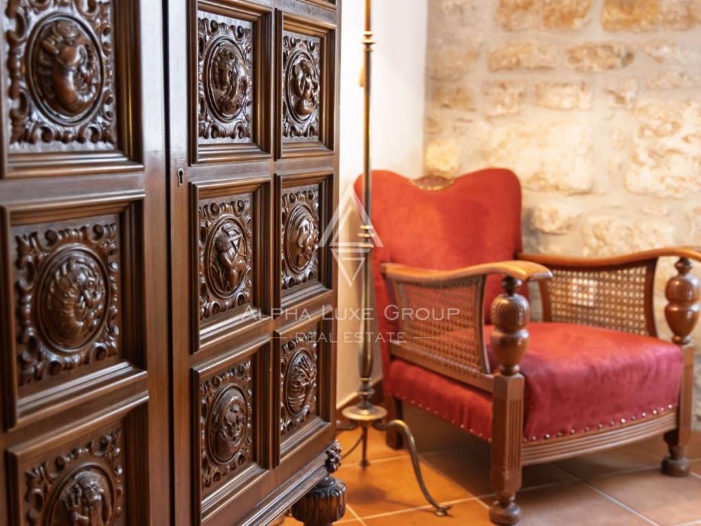 Zur technischen Ausstattung gehören Drehstrom, Wärmepumpe, Glasfaserinternet, Videoüberwachung, neue Haushaltsgeräte und erhaltene antike Möbelstücke, die Eleganz und Authentizität unterstreichen.