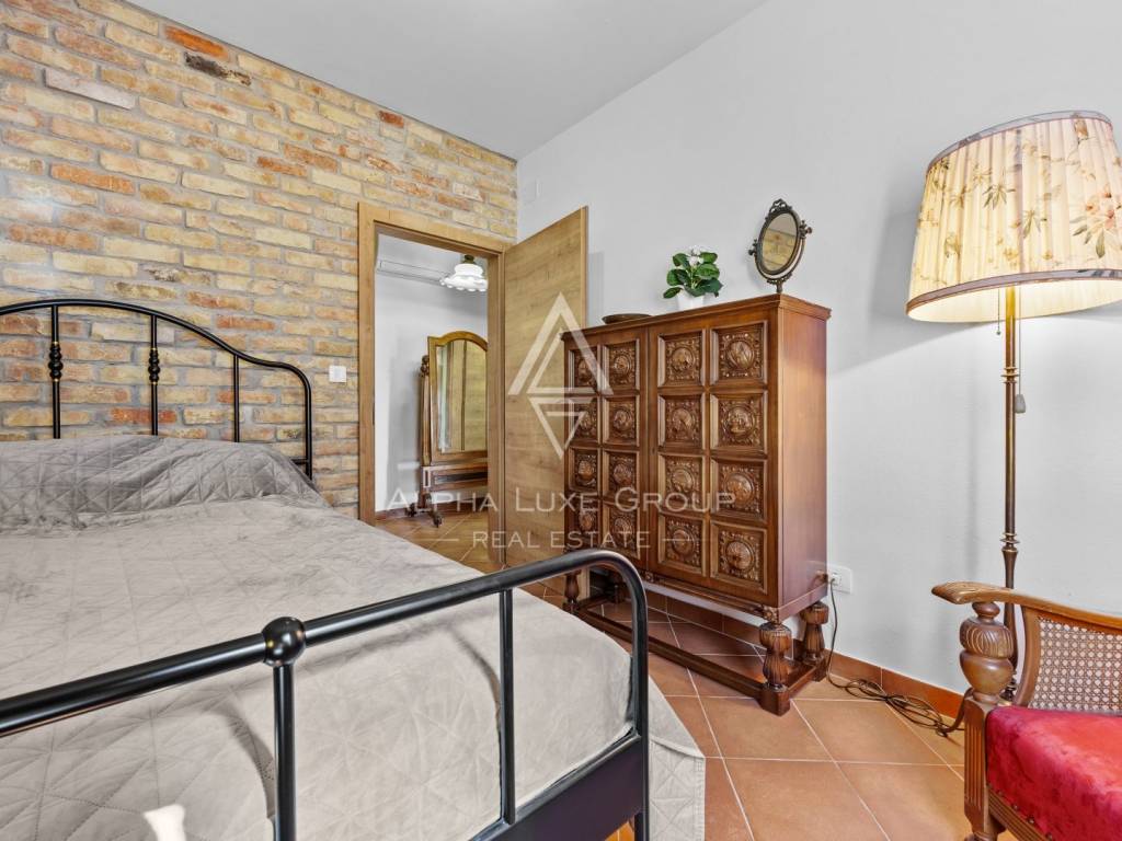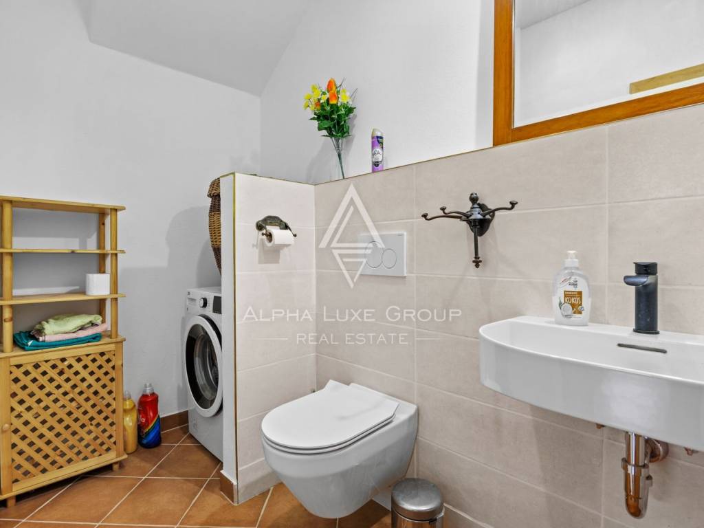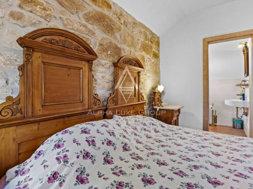 Im Obergeschoss führt ein eleganter Flur zu einem überdachten Balkon mit Blick auf die malerische Altstadt, die umliegenden Hügel und das Meer in der Ferne. Hier befinden sich zudem ein Hauptschlafzimmer mit eigenem Bad und Ankleideraum, zwei weitere Schlafzimmer, ein zusätzliches Bad sowie ein separater Hauswirtschaftsraum.
