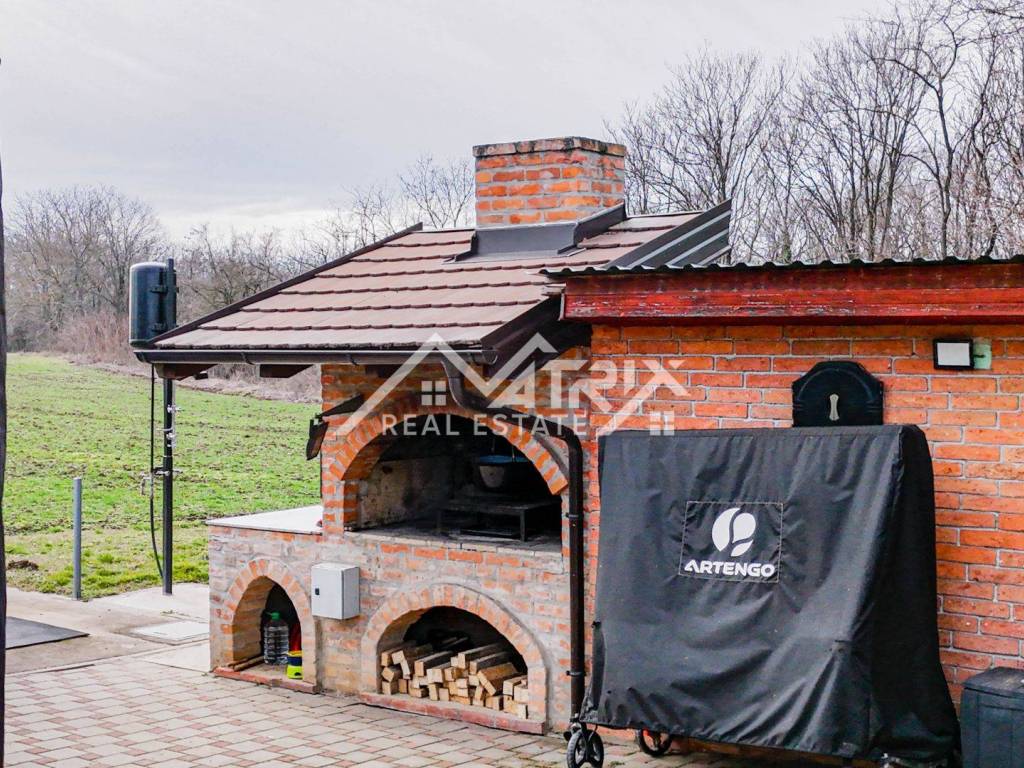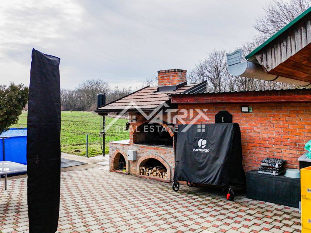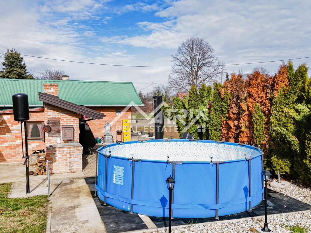 In ruhiger, grüner Lage nahe Aljmaš im Raum Osijek befindet sich dieses modern eingerichtete und komplett ausgestattete Wochenendhaus – ideal als Rückzugsort, für Wochenendtreffen oder als kleinere Investition zur Vermietung. Die Wohnfläche von 35 m² ist funktional aufgeteilt und bietet alles für einen angenehmen Aufenthalt das ganze Jahr über. Der Eingang führt auf eine überdachte, beheizte Terrasse, die zum zentralen Treffpunkt wird, weiter in eine moderne Küche mit Essbereich sowie in ein gepflegtes, gemütliches Wohnzimmer. Zudem stehen ein Schlafzimmer und ein Badezimmer zur Verfügung; zusätzlichen Stauraum bietet ein Abstellraum hinter dem Haus. Ein großer Pluspunkt ist das Grundstück mit ca. 3.200 m², das viel Privatsphäre und Raum für Freizeit und weitere Inhalte bietet. Im hinteren Teil liegen ein Pool zur Erfrischung im Sommer sowie ein gemauerter Grill für gesellige Stunden im Freien. Wer ein Wochenendhaus nahe Aljmaš mit Pool und großem Grundstück sucht, findet hier eine stimmige Kombination aus Komfort, Ruhe und Potenzial.