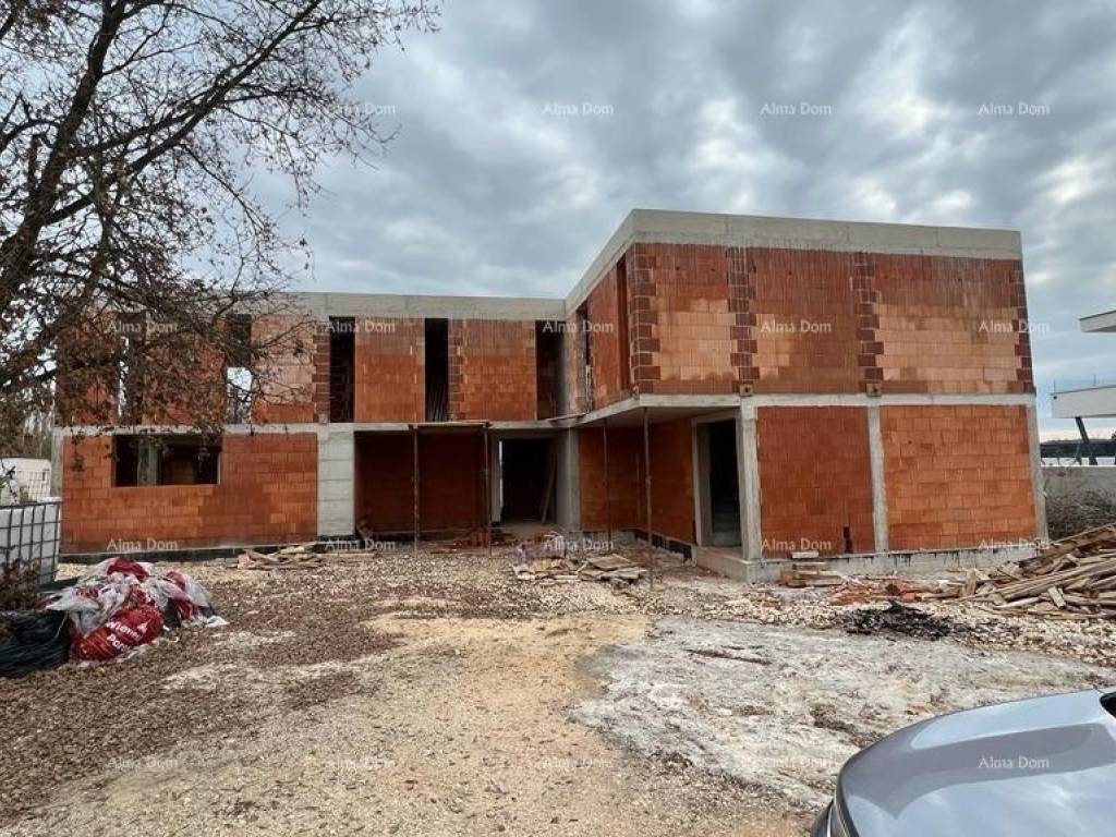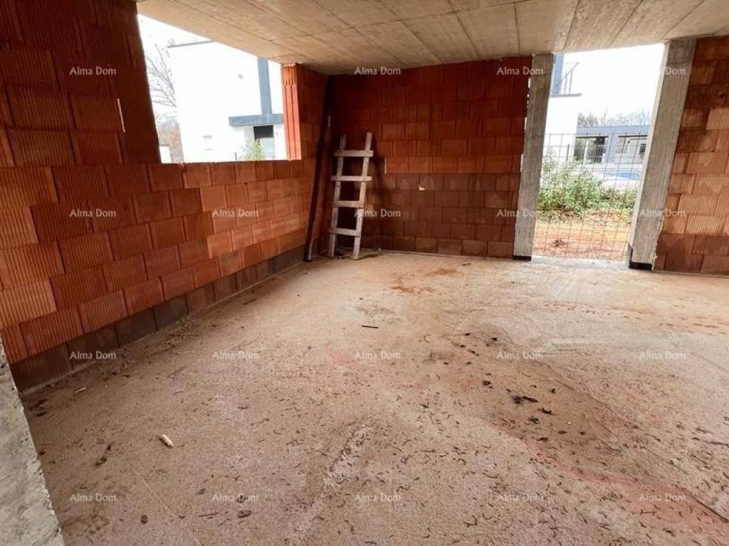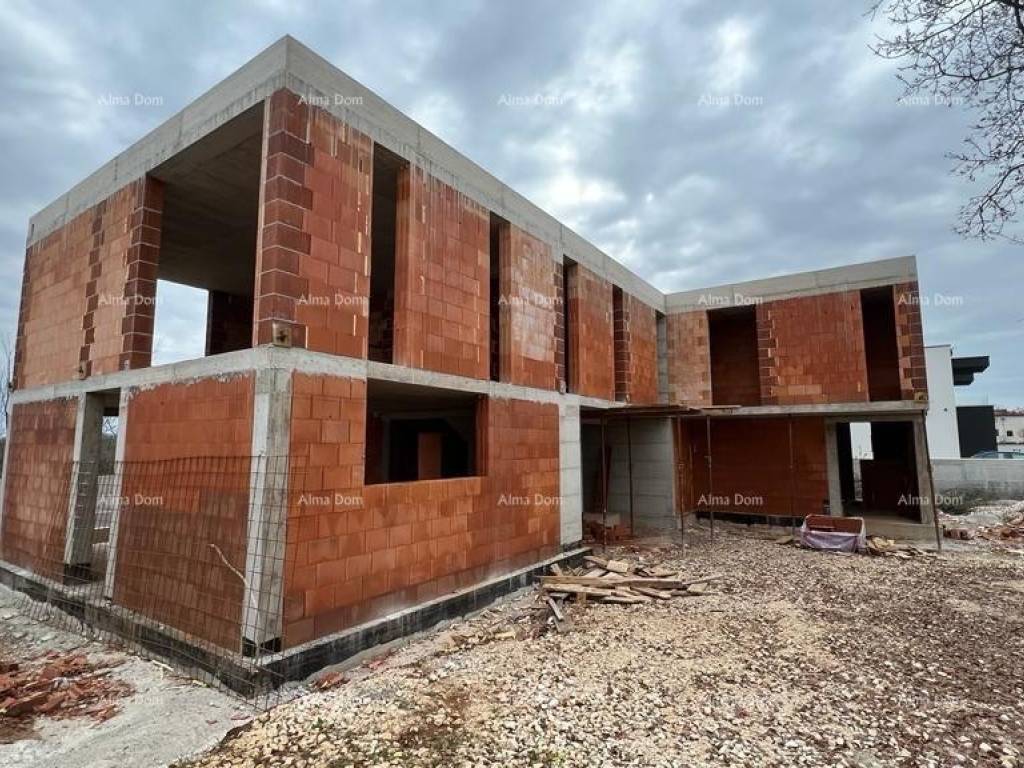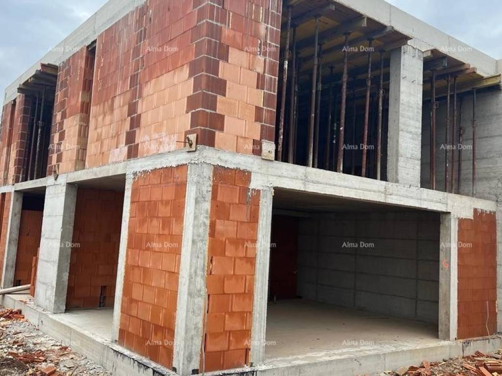 Liznjan! B Wir bieten ein Doppelhaus mit Swimmingpool im Bau! Schöner Ort. Es wird aus Erdgeschoss und Obergeschoss bestehen. Gesamtfläche 168 m2 mit einem Garten von 330 m2. Im Erdgeschoss gibt es eine Eingangshalle, ein Badezimmer, ein Schlafzimmer, eine Küche mit Esszimmer und ein Wohnzimmer von 45 m2. Vom Wohnzimmer gibt es einen Ausgang zur Terrasse und zum Hof durch eine große Glaswand. Pool im Hof. Es gibt 3 Schlafzimmer im ersten Stock des Hauses, jedes mit eigenem Bad.