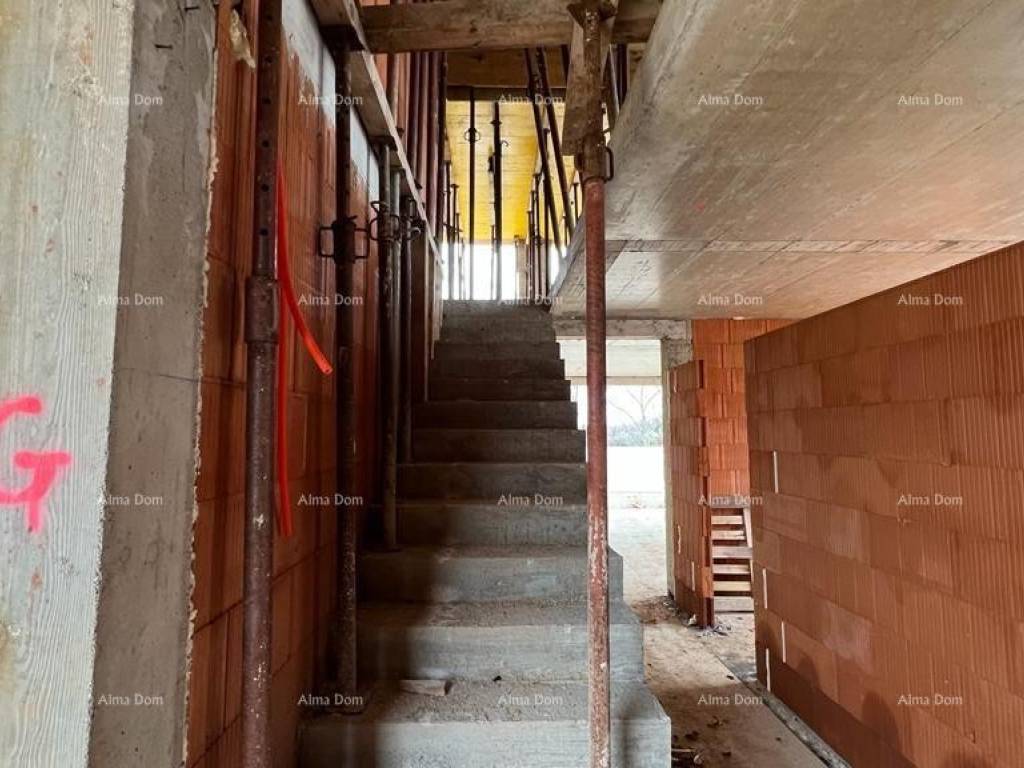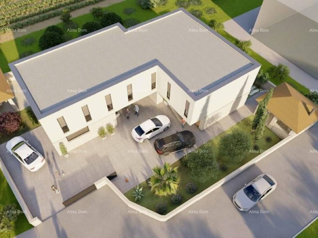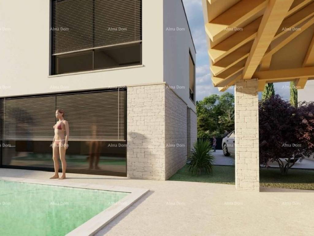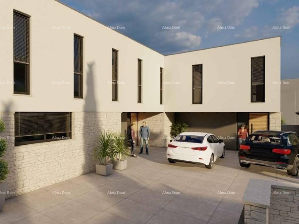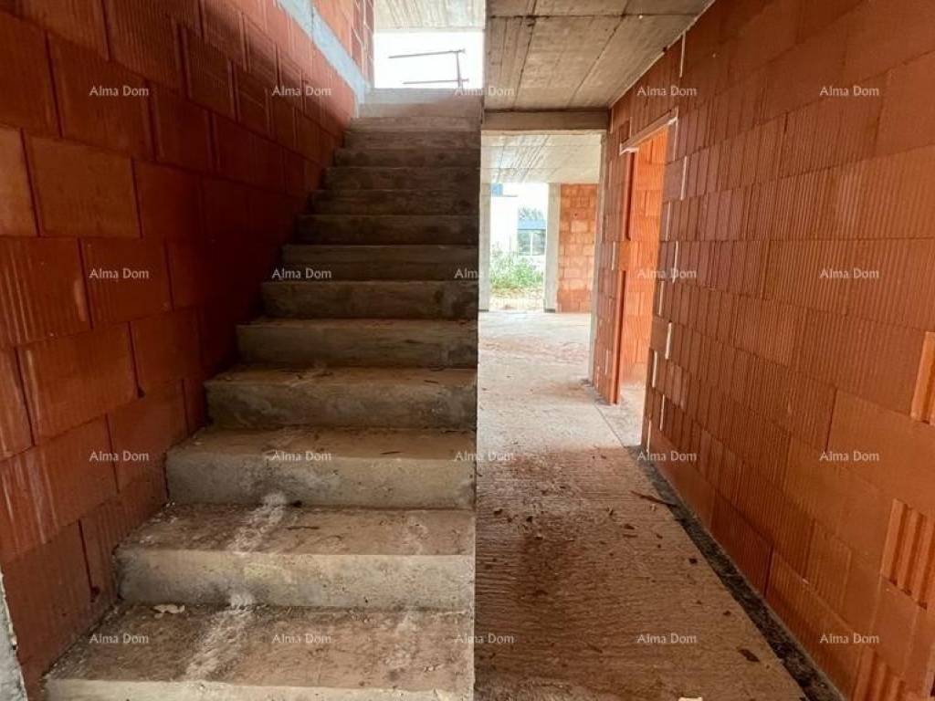 Liznjan! B Wir bieten ein Doppelhaus mit Swimmingpool im Bau! Schöner Ort. Es wird aus Erdgeschoss und Obergeschoss bestehen. Gesamtfläche 168 m2 mit einem Garten von 330 m2. Im Erdgeschoss gibt es eine Eingangshalle, ein Badezimmer, ein Schlafzimmer, eine Küche mit Esszimmer und ein Wohnzimmer von 45 m2. Vom Wohnzimmer gibt es einen Ausgang zur Terrasse und zum Hof durch eine große Glaswand. Pool im Hof. Es gibt 3 Schlafzimmer im ersten Stock des Hauses, jedes mit eigenem Bad.
