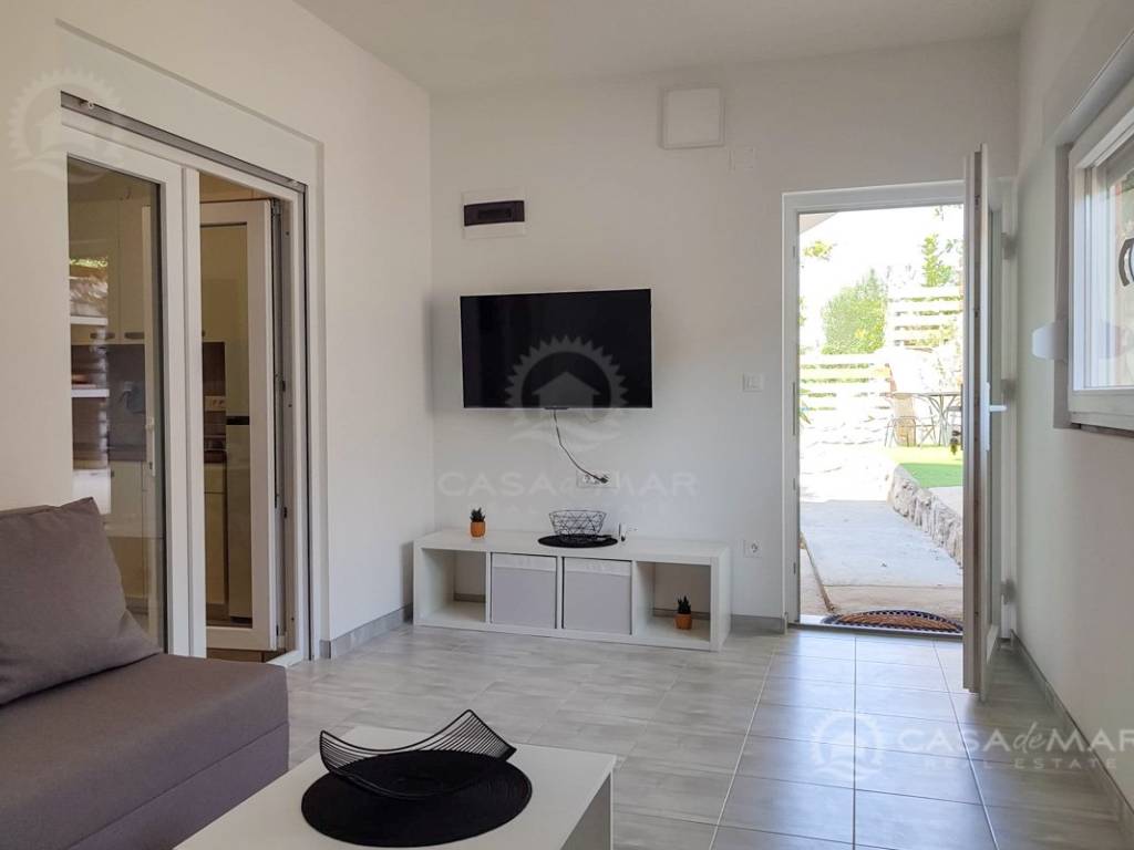 Zum Verkauf steht eine Wohnung in Crikvenica, in hervorragender Lage, nur wenige Gehminuten von einem wunderschönen Strand entfernt. Diese Immobilie stellt eine seltene und attraktive Kaufgelegenheit dar – ideal sowohl für den Eigenbedarf als auch für die touristische Vermietung. Die Wohnung befindet sich im Erdgeschoss eines Hauses und verfügt über eine funktional aufgeteilte Nutzfläche. Sie besteht aus einem Wohnzimmer, einer Küche mit Essbereich, zwei Schlafzimmern, einem Badezimmer, einem Flur sowie einem zusätzlichen Abstellraum. Besonderen Wert erhält diese Immobilie durch ihre Zusatzmerkmale: ein dazugehöriger Garten, ideal zum Entspannen und für den Aufenthalt im Freien, sowie ein Grillplatz im hinteren Teil des Hofes – perfekt für gesellige Stunden mit Familie und Freunden. Ein Parkplatz ist im Preis inbegriffen. Für Heizung und Kühlung sorgt eine Klimaanlage, die ganzjährigen Wohnkomfort gewährleistet.