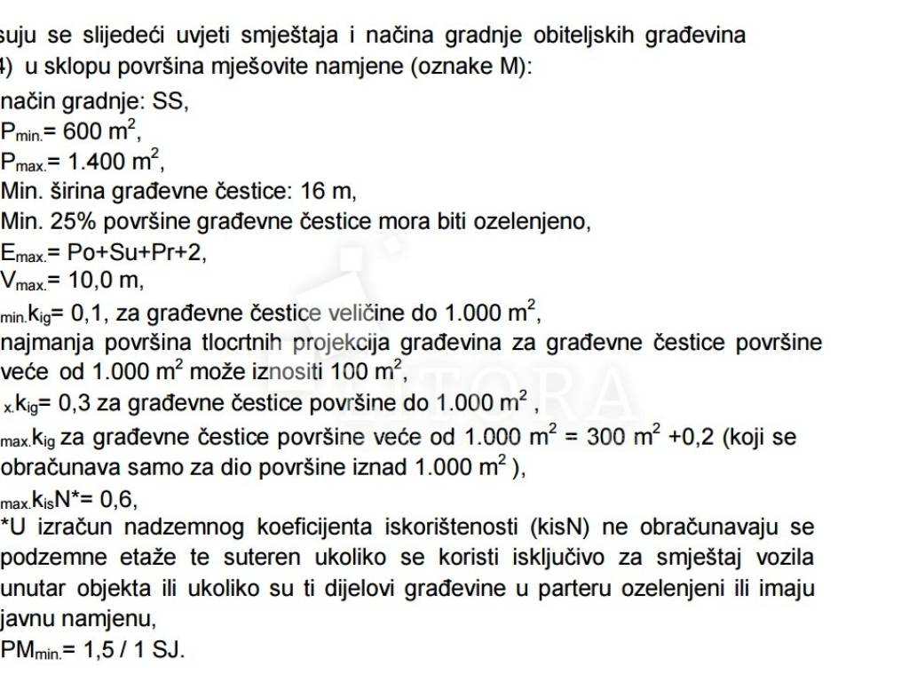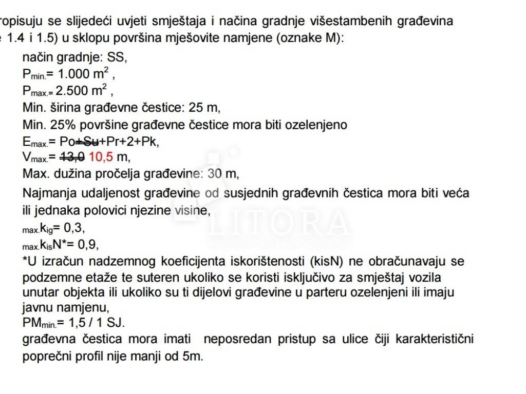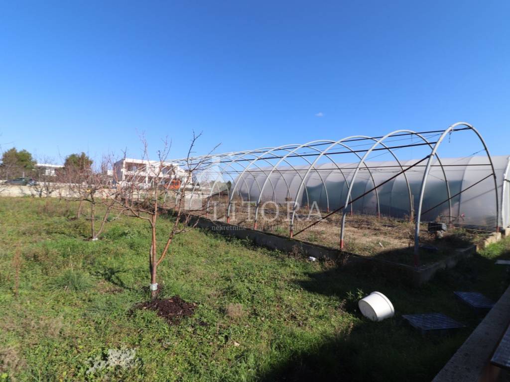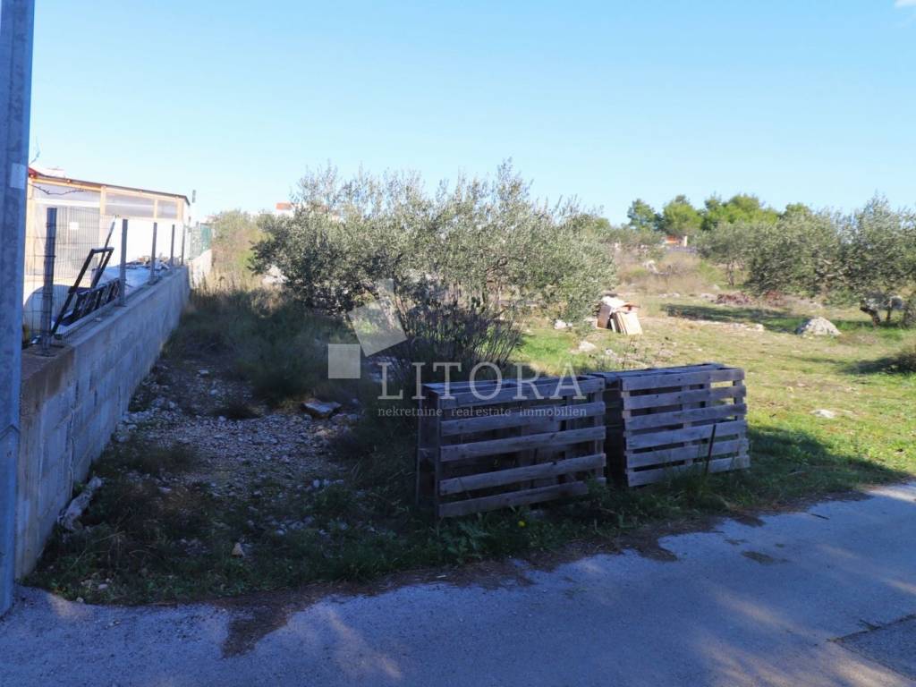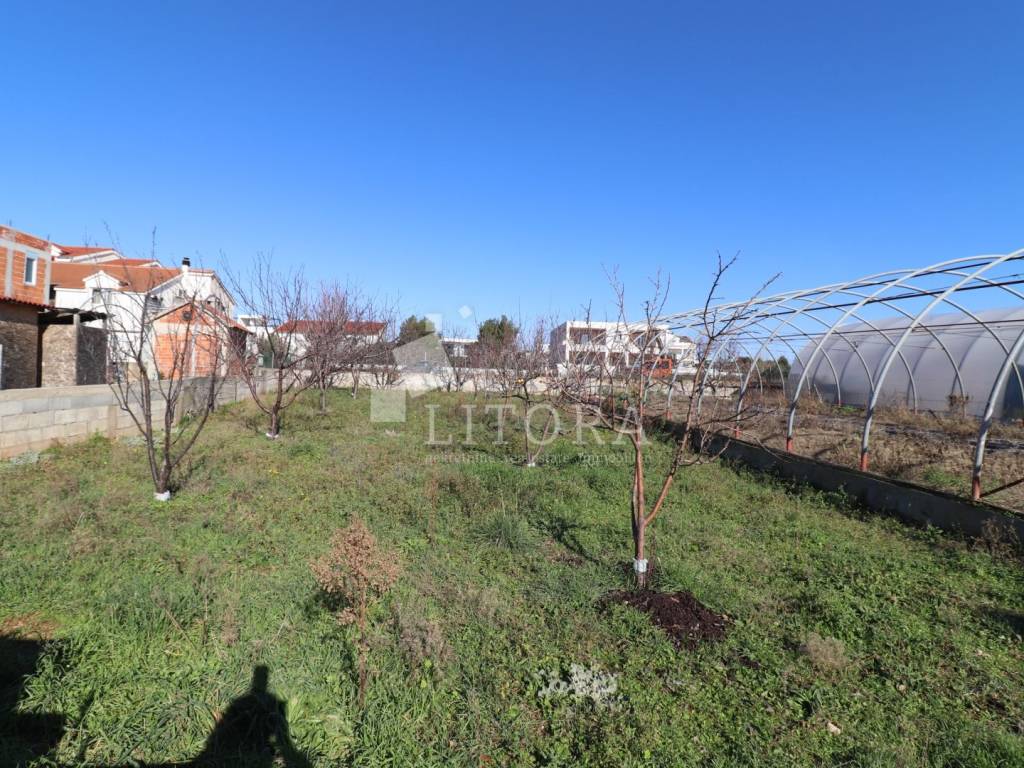 Vodice, ruhige Umgebung, Baugrundstück mit einer Fläche von 1.256 m². Gemäß dem städtebaulichen Plan der Stadt Vodice befindet sich das Grundstück in der Zone M – 1.4. Das Grundstück hat eine regelmäßige rechteckige Form mit den Abmessungen 26 m Breite und 45 m Länge. Auf dem Grundstück sind mehrere junge Obstbäume gepflanzt, außerdem wurde eine Gewächshauskonstruktion mit einer Fläche von 300 m² errichtet. Das Grundstück ist mit einer Betonmauer eingezäunt. Das Grundstück hat Zugang zu einer öffentlichen Zufahrtsstraße. Die komplette Infrastruktur befindet sich neben dem Grundstück. Die Entfernung zum Strand beträgt 1.400 m und zum Zentrum 1.000 m. Auf dem Grundstück ist der Bau von Einfamilienhäusern oder Mehrfamilienhäusern möglich.