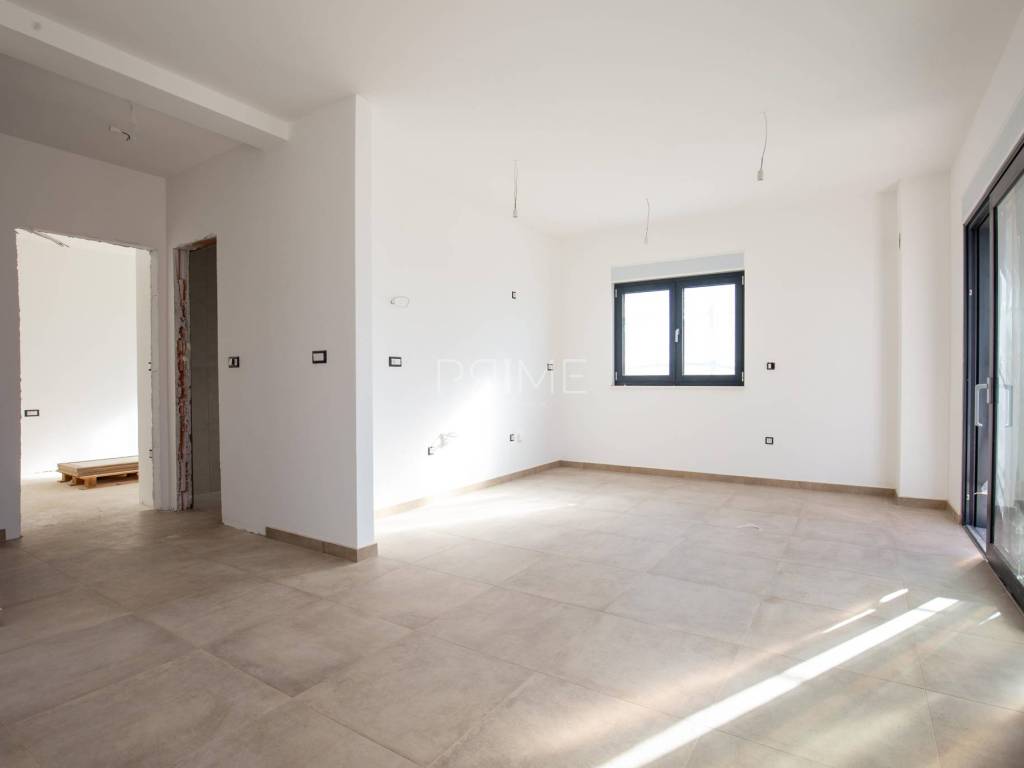 Prodaje se moderan dvosoban stan (S1) smješten u prizemlju manje stambene zgrade s ukupno šest stambenih jedinica (po dva stana na svakoj etaži). Ukupna površina stana iznosi 82,63 m², od čega 75,53 m² čini stambeni dio, a dodatno mu pripadaju vrt površine 46 m² i jedno vanjsko parkirno mjesto.