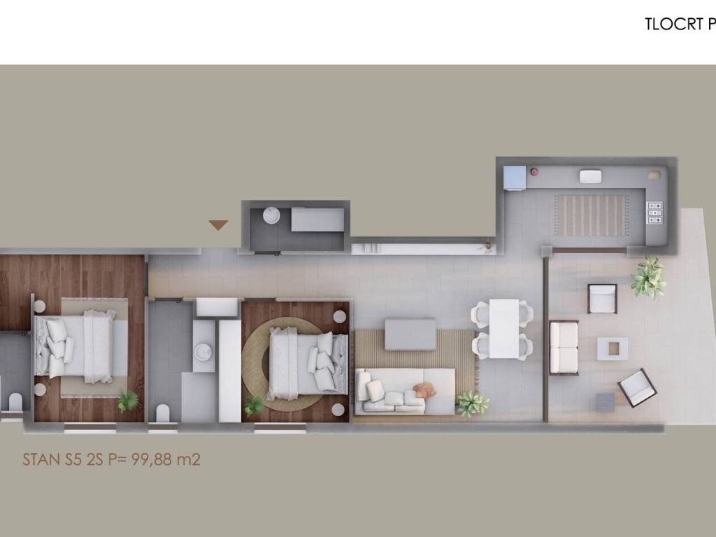 S5-99,88 m², dvije spavaće sobe, CIJENA 369.000,00 EURA
