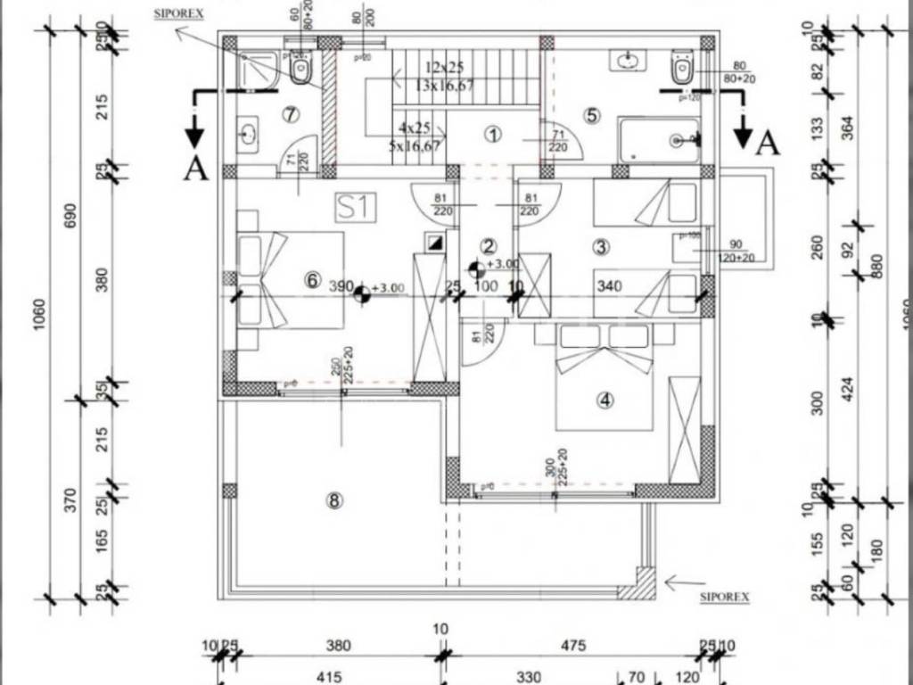 Na prvom katu smještene su tri spavaće sobe, od kojih master soba ima vlastitu luksuznu kupaonicu. Dvije spavaće sobe imaju izlaz na prostranu natkrivenu terasu s koje se pruža prekrasan pogled na more i okolicu, savršen za jutarnju kavu ili večernje opuštanje. Tu je i dodatna  kupaonica,  što osigurava privatnost i udobnost za sve članove obitelji.