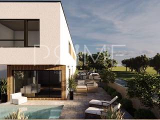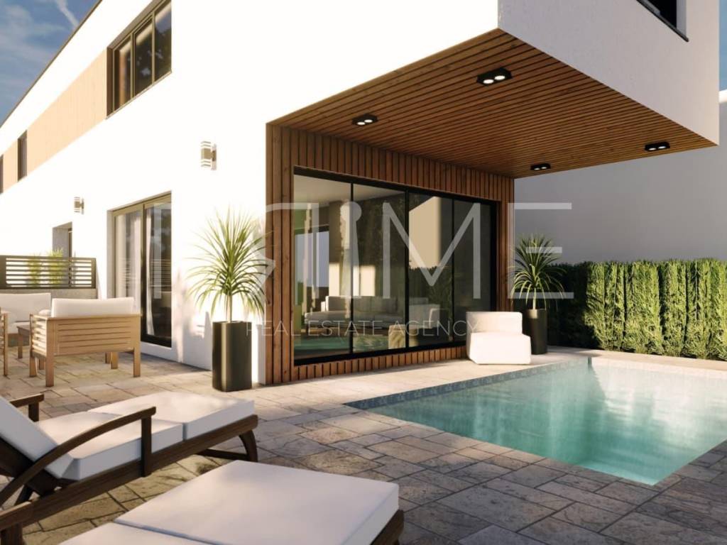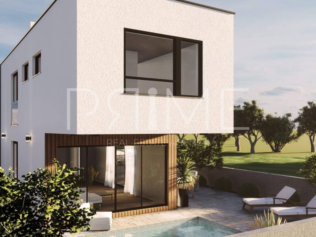 Građevinsko zemljište površine508 m²s izdanom i u cijelosti plaćenom građevinskom dozvolom zadvojnu modernu vilu s bazenom. Dozvola obuhvaća izgradnjudvije kuće (dvojnog objekta),od kojih svaka imaneto površinu 171,15m²te vlastitibazen površine 24 m². Projekt predviđa suvremeno arhitektonsko rješenje s naglaskom na funkcionalnost, estetiku i privatnost. Svaka vila sastoji se od: kuhinje, blagovaonice, dnevnog boravka,četiri spavaće sobe,WC-a,dvije kupaonicetevešeraja.Prostori su pažljivo raspoređeni kako bi pružili maksimalnu udobnost i komfor. Također postoji mogućnostizmjene projekta,poput izgradnje samostojeće kuće ili stambene zgrade, a u tom slučaju se budućem vlasnikuuračunavaju već plaćeni komunalni doprinosi. Zemljište se nalazi nanajatraktivnijem dijelu otoka Vira – Prezidi, poznatom po miru, zelenilu i visokokvalitetnom okruženju. Udaljenost do mora i prekrasne pješčano-šljunčane plaže iznosi svega250 metara, što ovu lokaciju čini idealnom za luksuzno stanovanje, turistički najam ili investiciju. Za dodatne informacije ili dogovor oko razgledavanja –kontaktirajte nas!