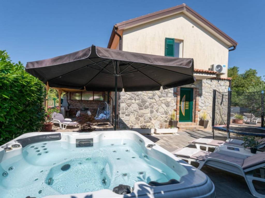 Der Außenbereich ist gepflegt angelegt und bietet Swimmingpool mit Sonnenterrasse, Jacuzzi, Außendusche, Grillplatz und zwei Terrassen.