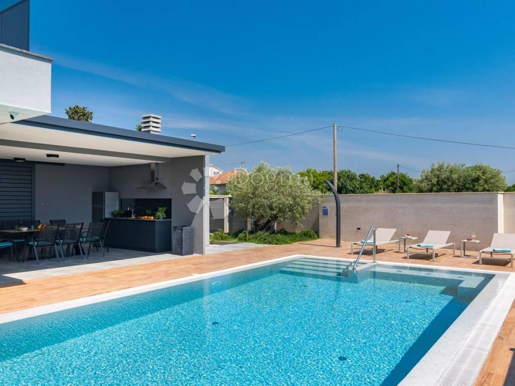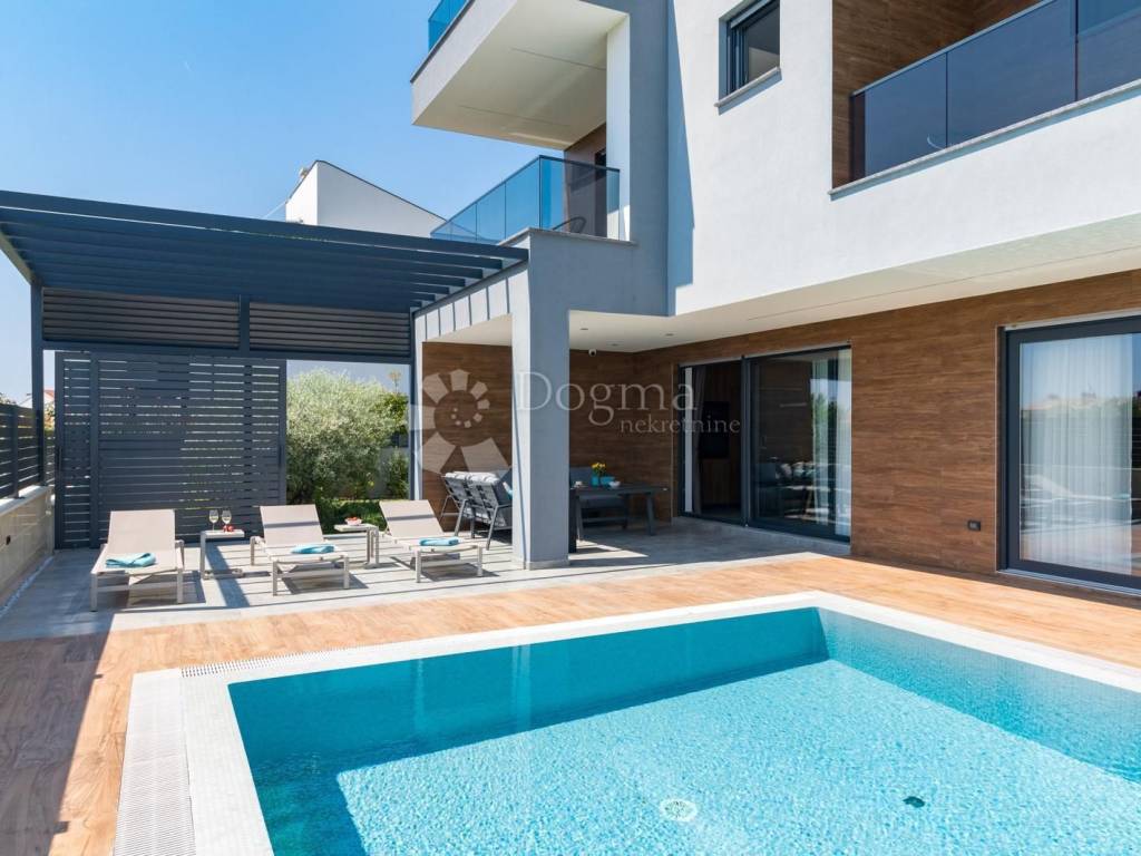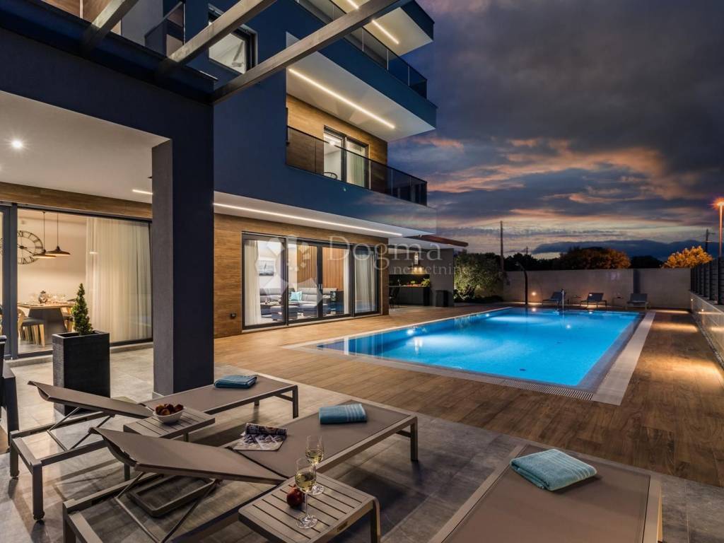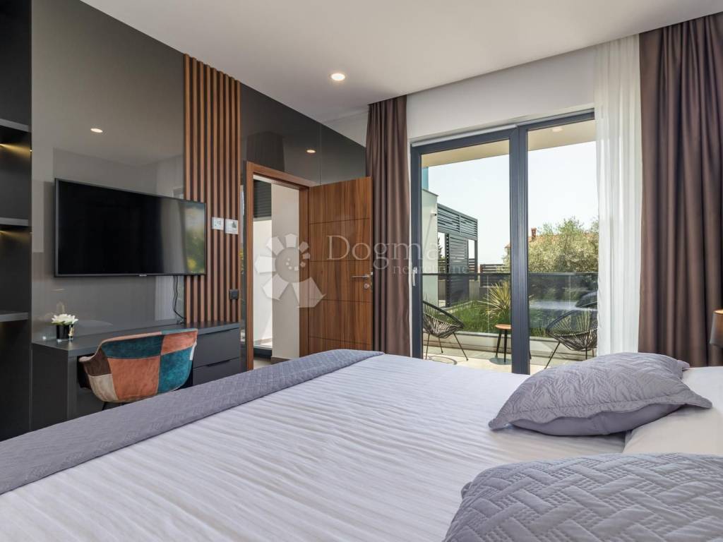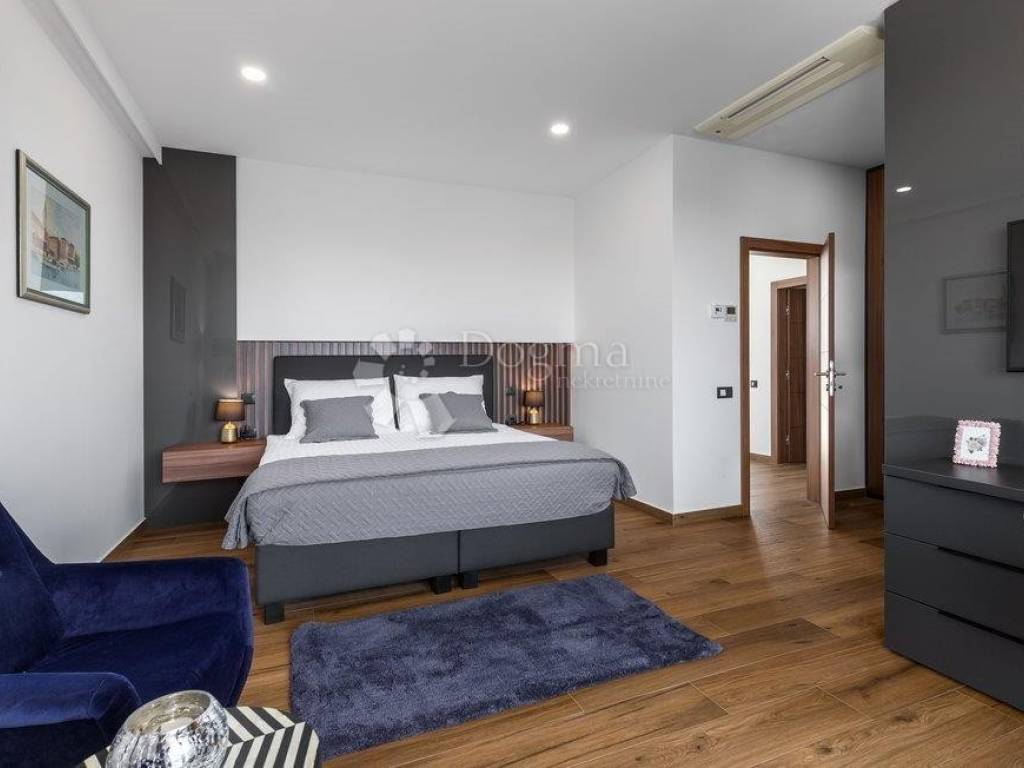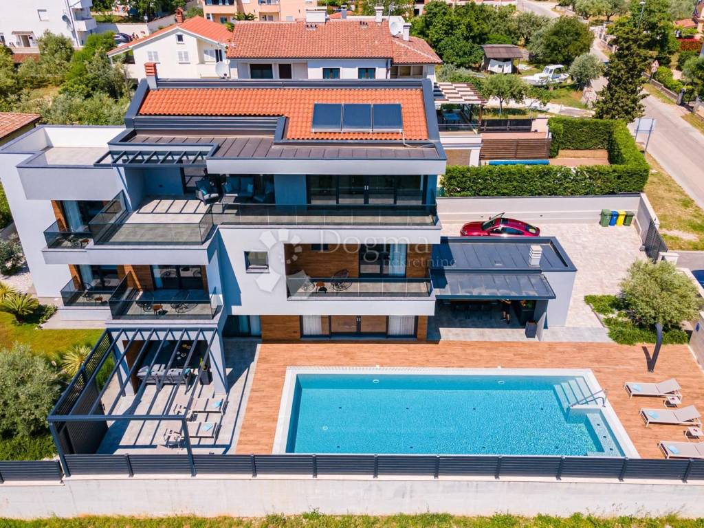 Fažana zählt zu den begehrtesten Küstenorten im Südwesten Istriens und ist bekannt für seinen Charme, seine unberührte Natur und seinen entspannten mediterranen Lebensstil. In unmittelbarer Nähe des Nationalparks Brijuni, umgeben von traumhaften Stränden und kristallklarem Meer, bietet dieser Ort die perfekte Balance aus Ruhe, Exklusivität und dezentem Luxus. Genau an diesem prestigeträchtigen Standort befindet sich eine erstklassige Designervilla, die luxuriöses Wohnen am Meer in Perfektion verkörpert. Sie erstreckt sich über beeindruckende 400 m Wohnfläche, eingebettet in einen 880 m großen Landschaftsgarten, und liegt nur 600 Meter vom Meer entfernt. Der Panoramablick auf das Meer und Brijuni schafft zu jeder Tageszeit eine unvergessliche Atmosphäre. Erdgeschoss offener Luxus und maximaler Komfort: Im Erdgeschoss empfängt Sie ein großzügiges Wohnzimmer mit Essbereich und einer modernen, offenen Küche, die durch große Glaswände fließend in den Außenbereich übergeht. Auf dieser Etage befinden sich außerdem ein Schlafzimmer mit Bad en suite, ein zusätzliches WC und ein Technikraum mit Fußbodenheizung und Wärmepumpe. Die Villa ist mit Solarpaneelen zur Warmwasserbereitung ausgestattet, was zu hoher Energieeffizienz und nachhaltigem Wohnen beiträgt. Außenbereich eine private Oase zum Genießen. Der Außenbereich ist wie ein wahres Resort gestaltet: 65 m großer Infinity-Pool mit Hydromassage, Sommerküche und zusätzliches WC, angelegter Garten und privater Parkplatz. Alles ist auf vollkommene Entspannung, Geselligkeit und unvergessliche Momente ausgerichtet. Erste Etage drei luxuriöse Oasen der Privatsphäre. Die erste Etage bietet drei luxuriöse Schlafzimmer, jeweils mit eigenem Bad und zusätzlichem Stauraum. Die Räume strahlen Eleganz aus, und jedes Detail wurde sorgfältig ausgewählt, um maximalen Komfort zu bieten. Zweite Etage Fitness, Wellness & atemberaubende Aussicht. In der zweiten Etage befindet sich ein Fitnessbereich mit Minibar und Zugang zu großzügigen Terrassen mit freiem Meerblick. Ein idealer Ort zum Entspannen, Meditieren, Trainieren oder um den Sonnenuntergang zu genießen. Zusätzliche Vorteile: Komplett ausgestattete Designervilla, 8 Klimaanlagen, hochwertige Materialien und Ausstattung, perfekte Verbindung von modernem Design und Funktionalität. Diese Immobilie zählt zu den attraktivsten Villen auf dem istrischen Immobilienmarkt ideal für luxuriöses Familienleben und als erstklassige Ferienimmobilie. Eine Villa dieser Klasse ist selten auf dem Markt exklusiv, komplett ausgestattet und bereit für den anspruchsvollsten Käufer. STEFANO PERUŠKO, Lizenzierter Immobilienmakler, Mobil: 099/721-0395, stefano.perusko@dogma-nekretnine.com