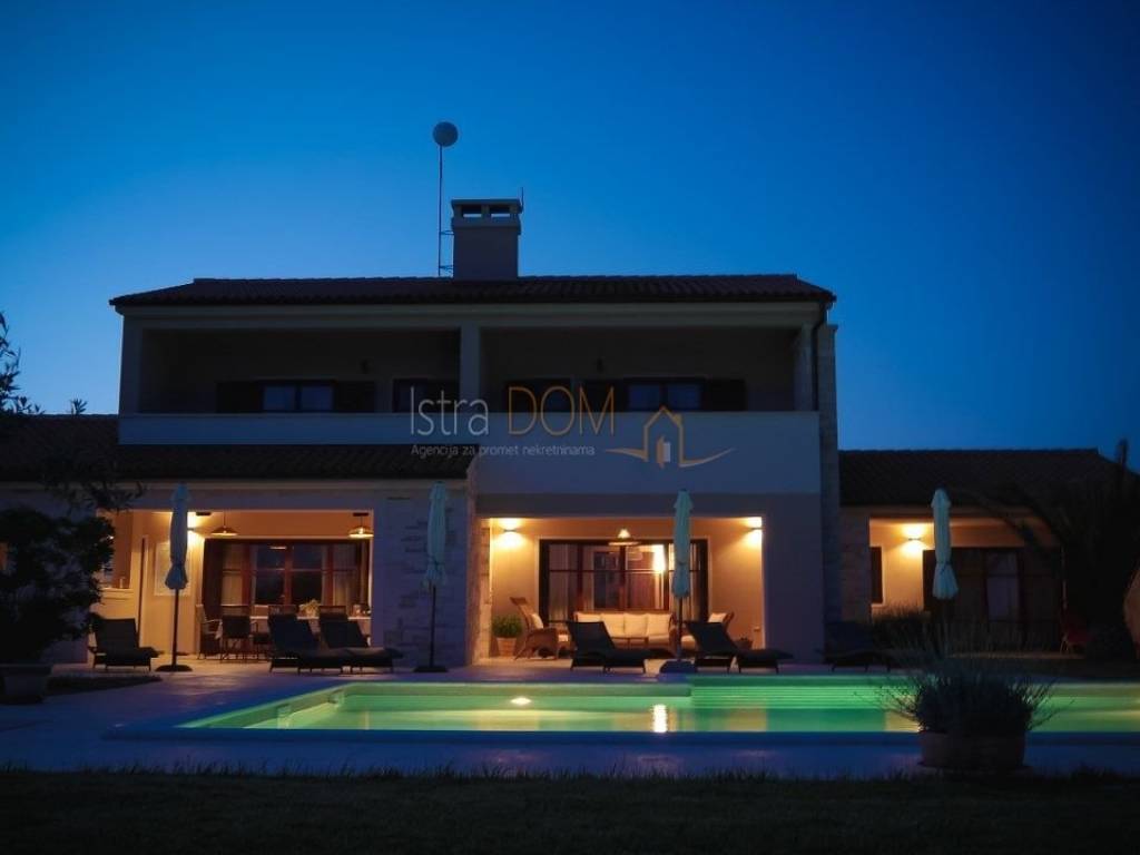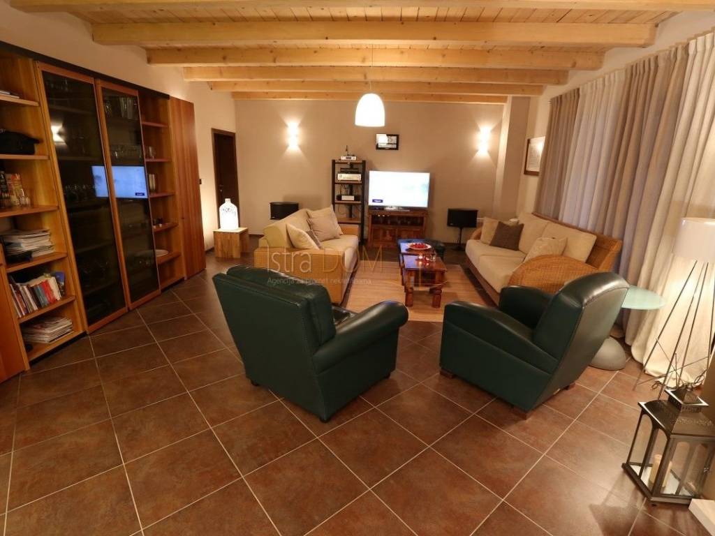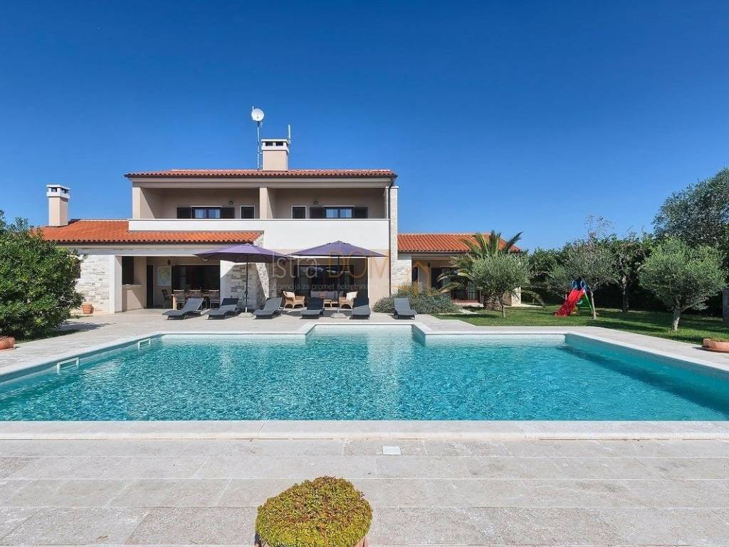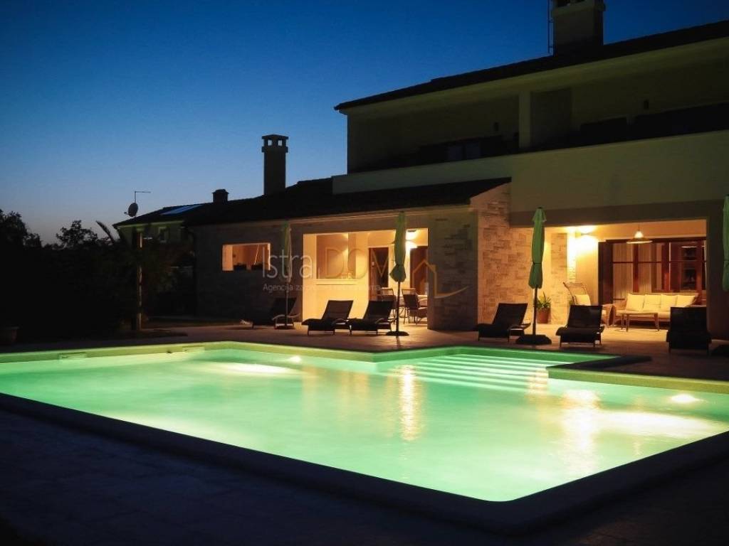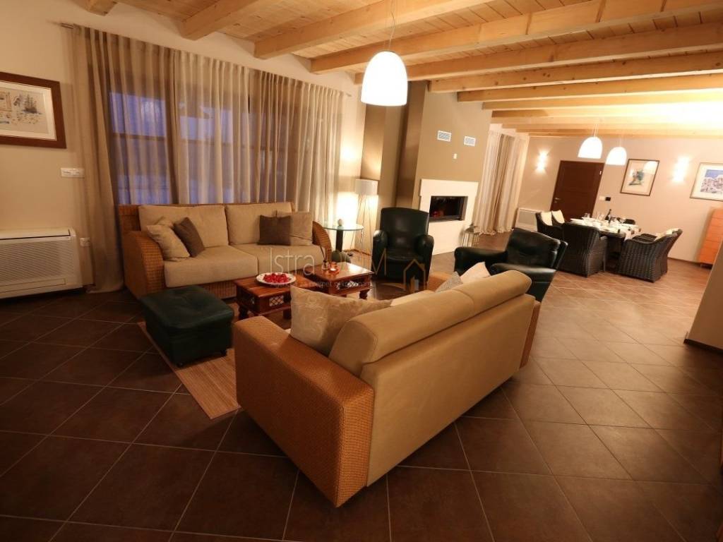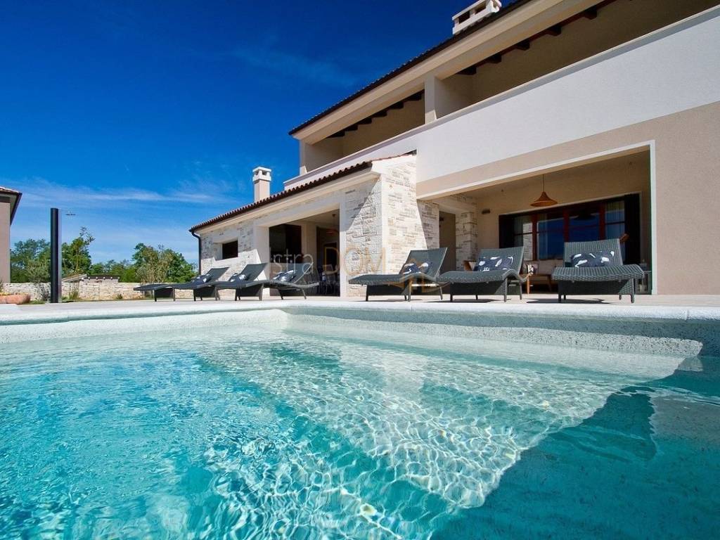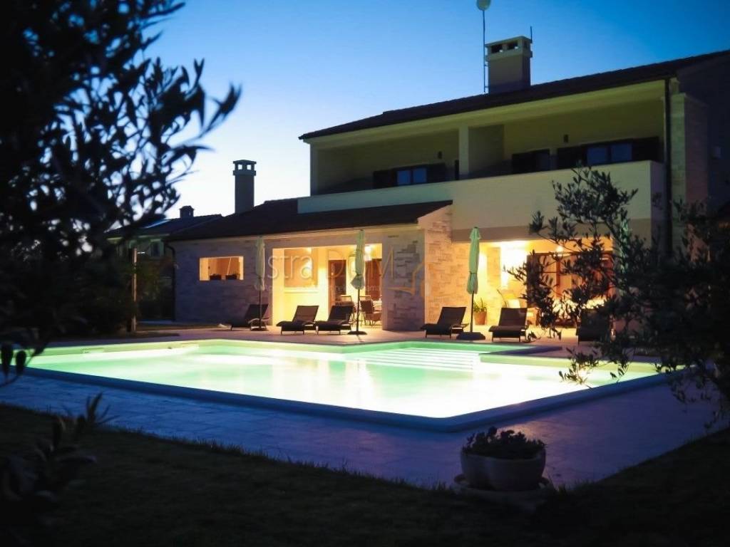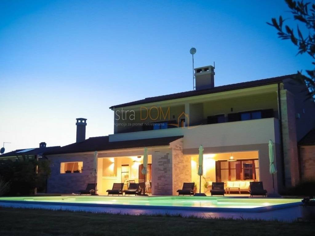 Eine wunderschöne Villa zum Verkauf in Juršići, ideal für Liebhaber der Natur und des luxuriösen Lebens. Diese geräumige 400 m² große Villa befindet sich auf einem 1990 m² großen Grundstück mit einem wunderschönen Swimmingpool und 22 Olivenbäumen, perfekt um sonnige Tage zu genießen.