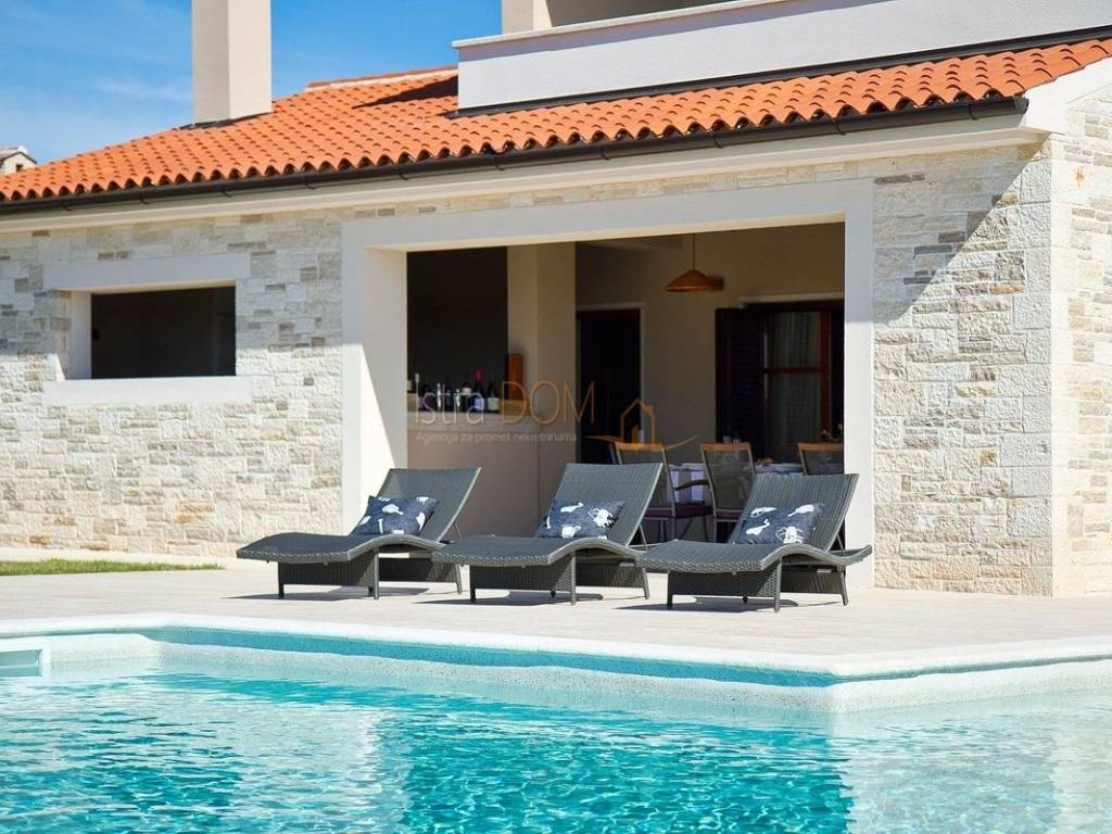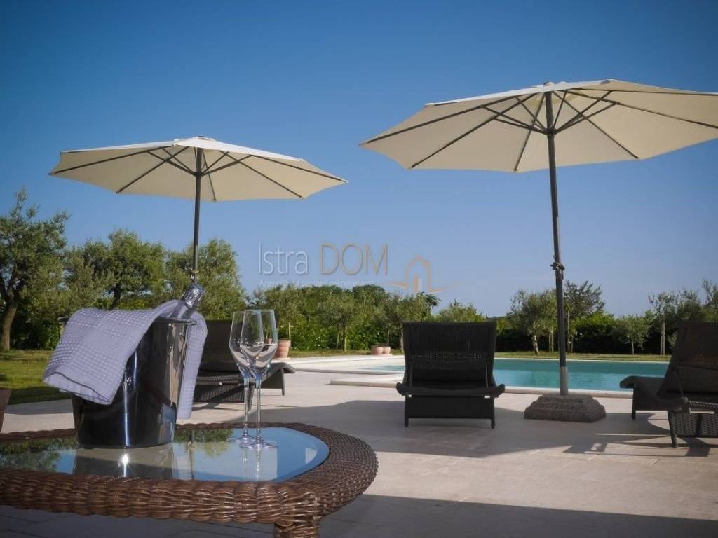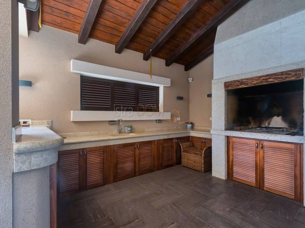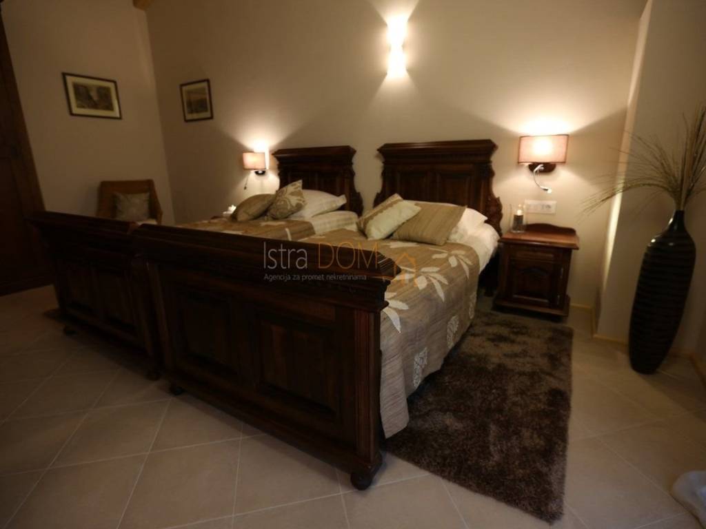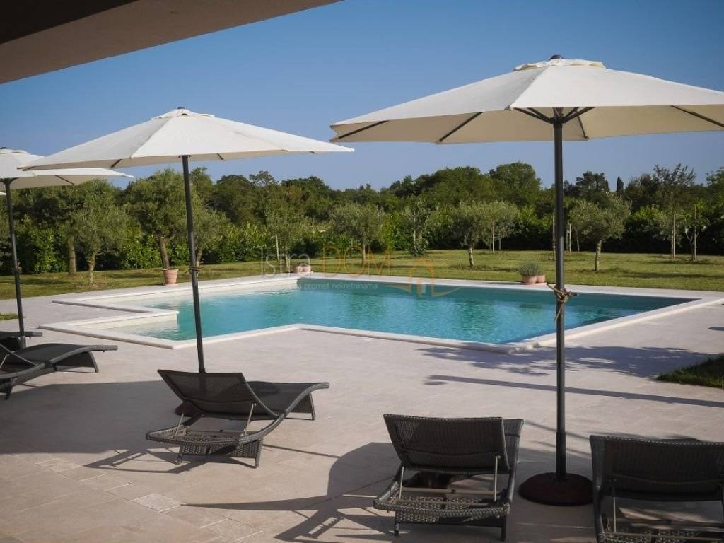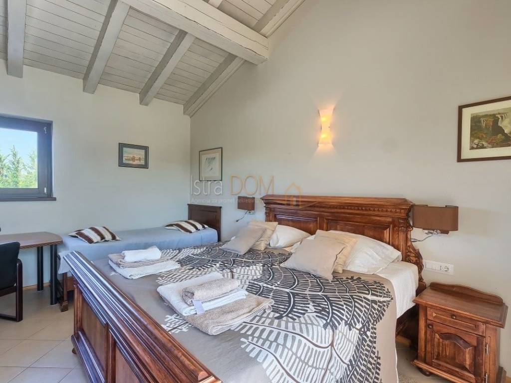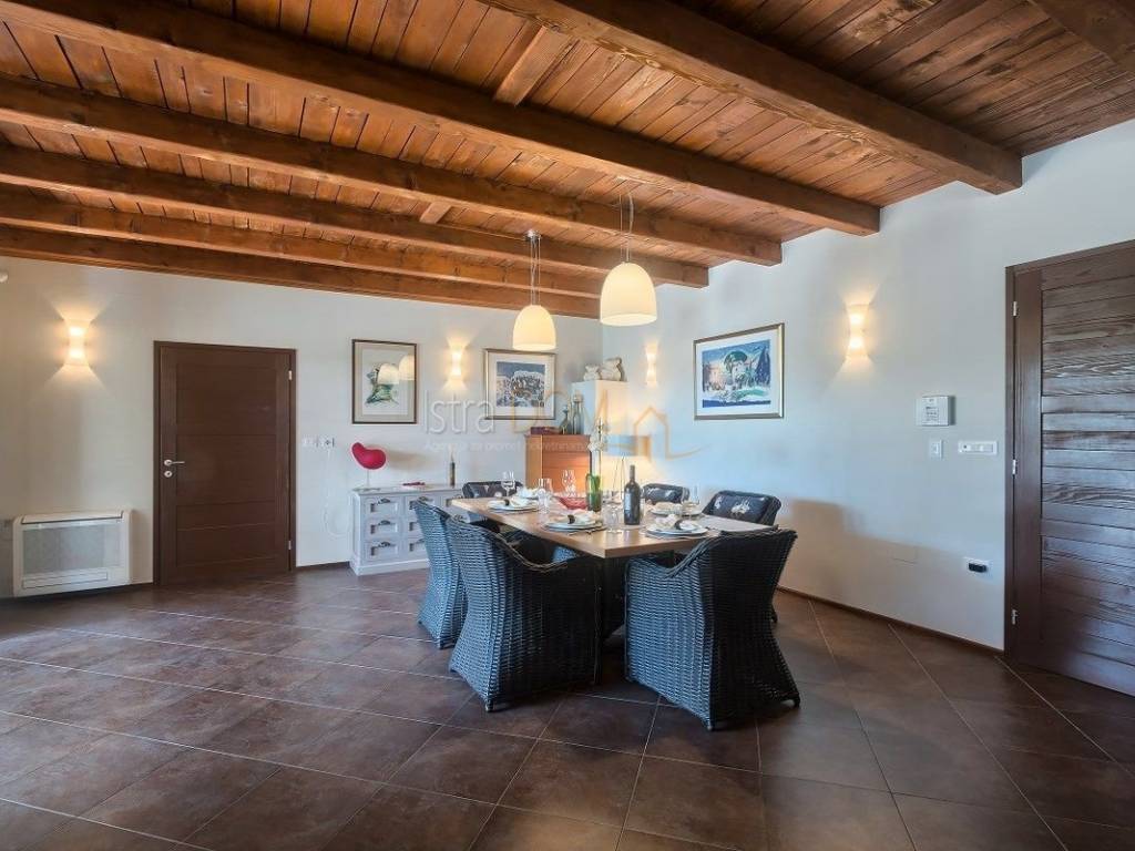 Eine wunderschöne Villa zum Verkauf in Juršići, ideal für Liebhaber der Natur und des luxuriösen Lebens. Diese geräumige 400 m² große Villa befindet sich auf einem 1990 m² großen Grundstück mit einem wunderschönen Swimmingpool und 22 Olivenbäumen, perfekt um sonnige Tage zu genießen.