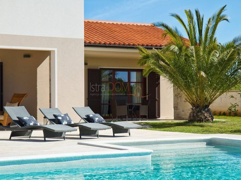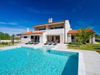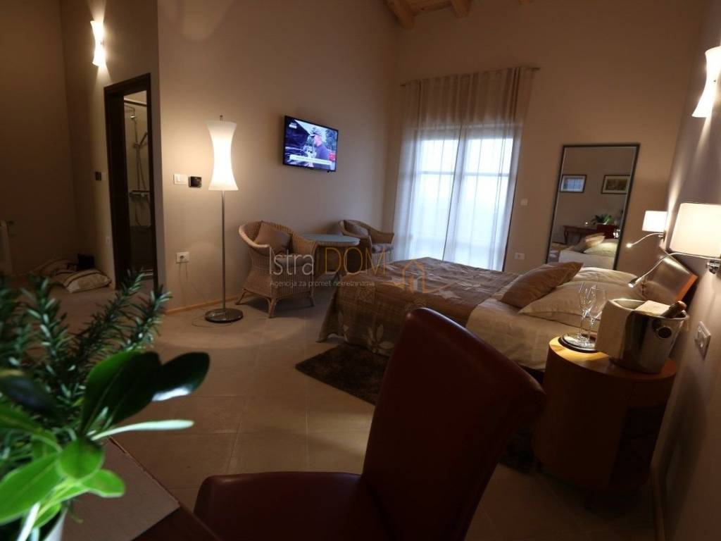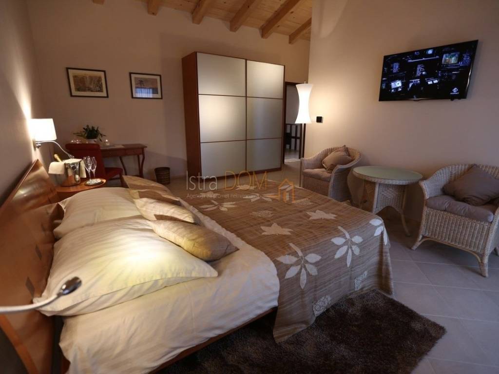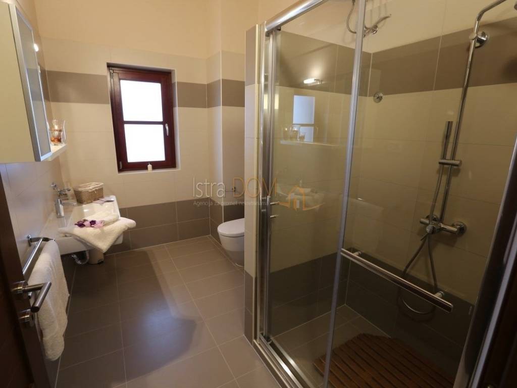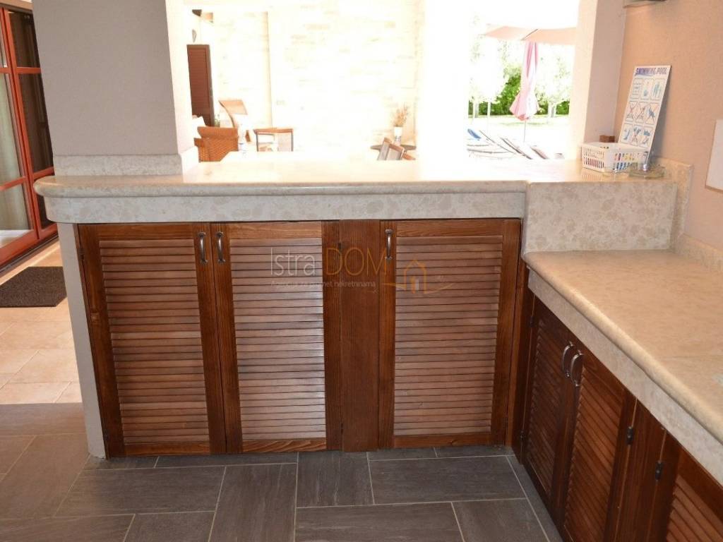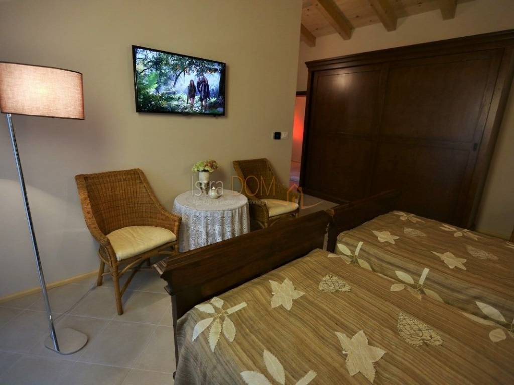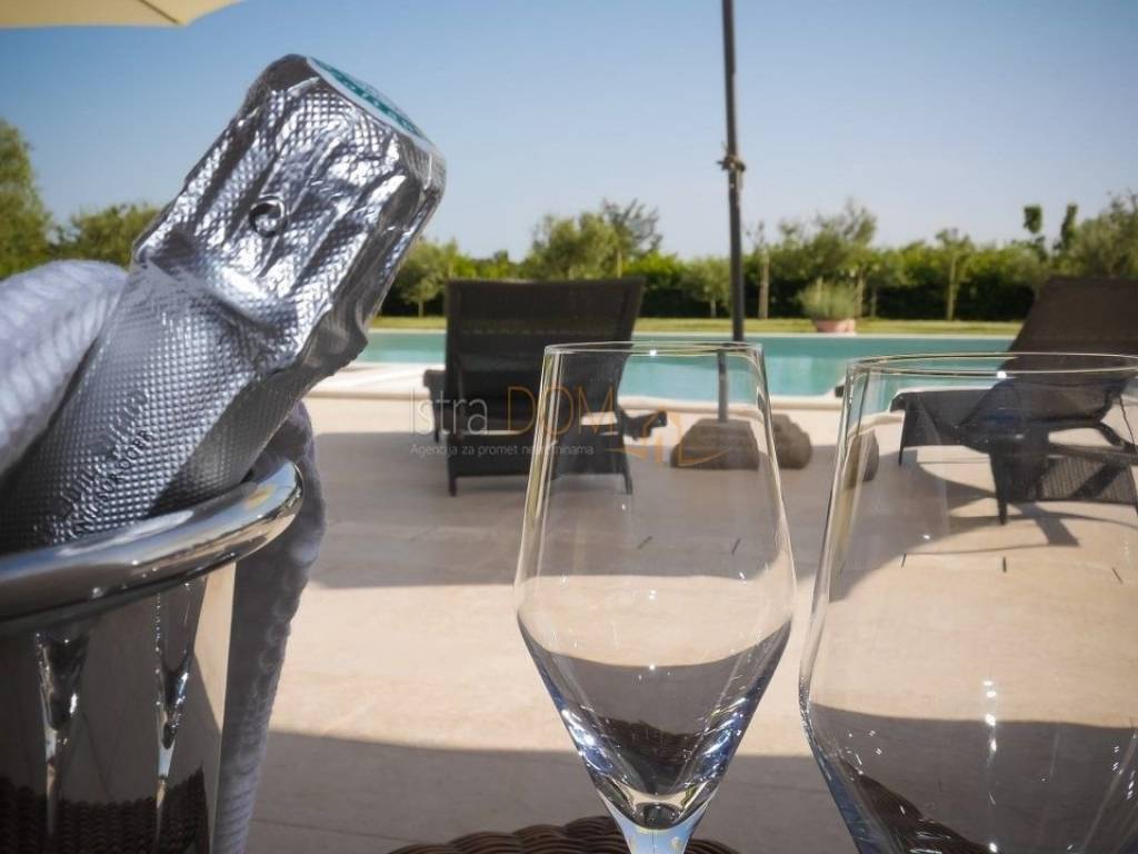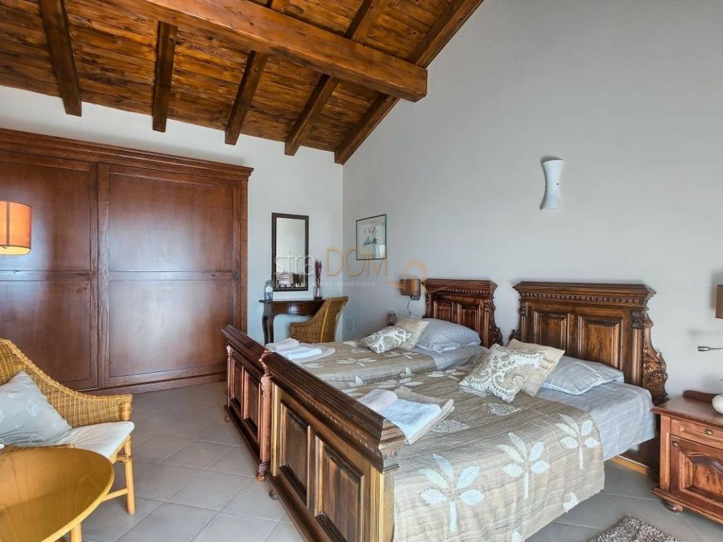 Eine wunderschöne Villa zum Verkauf in Juršići, ideal für Liebhaber der Natur und des luxuriösen Lebens. Diese geräumige 400 m² große Villa befindet sich auf einem 1990 m² großen Grundstück mit einem wunderschönen Swimmingpool und 22 Olivenbäumen, perfekt um sonnige Tage zu genießen.