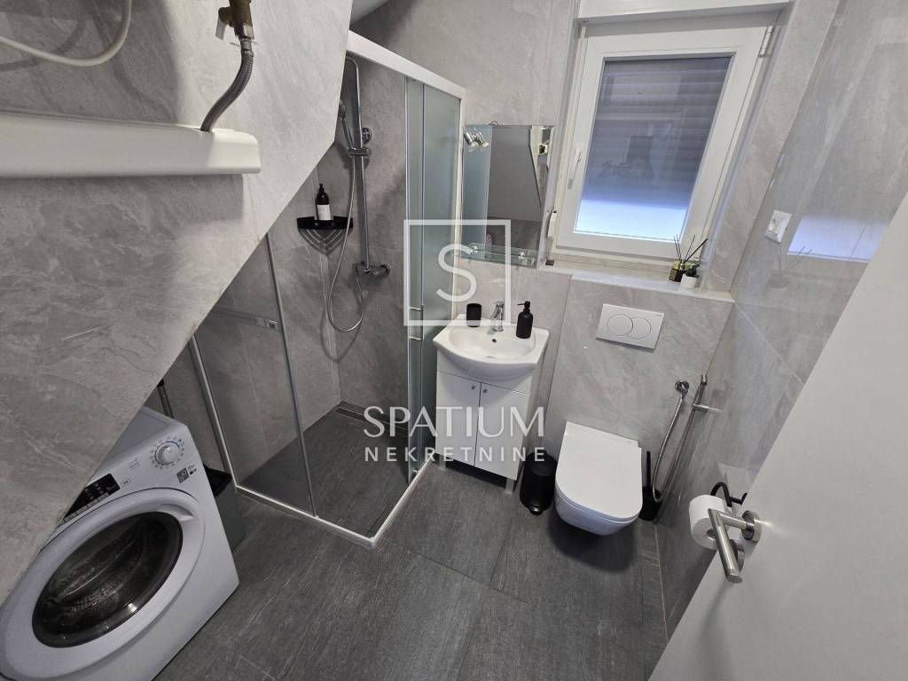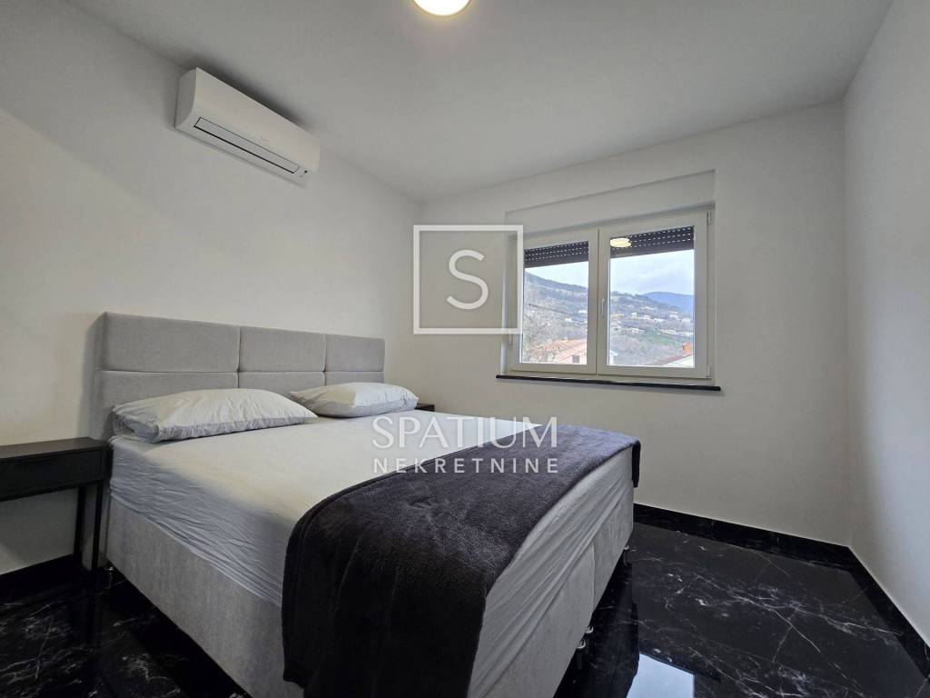 In Lovran, Oprić, bieten wir eine Wohnung in einem Neubau mit einer Gesamtfläche von 98,50 m² an. Neben der wunderschönen Aussicht und der ruhigen Lage in der Nähe aller Annehmlichkeiten besticht die Wohnung durch ihr besonderes Konzept: Sie erstreckt sich über zwei Etagen und besteht aus zwei komplett separaten Wohneinheiten. Im ersten Obergeschoss befindet sich eine Zweizimmerwohnung mit Wohnzimmer und Loggia, im zweiten Obergeschoss eine Einzimmerwohnung mit Wohnzimmer und Loggia. Die Wohnungen sind möbliert und sofort bezugsfertig. Daikin-Klimaanlagen und Videoüberwachung sind installiert. Zwei Parkplätze gehören ebenfalls zur Wohnung. Die sorgfältig ausgewählte Außenbeleuchtung sorgt abends für ein besonderes Ambiente, wenn der Panoramablick auf die Kvarner Bucht atemberaubend ist. Nur wenige Autominuten vom Zentrum von Lovran und den ersten Stränden entfernt, ist diese Immobilie nicht nur ein ideales Sommerreiseziel, sondern auch ein angenehmer Wohnort.