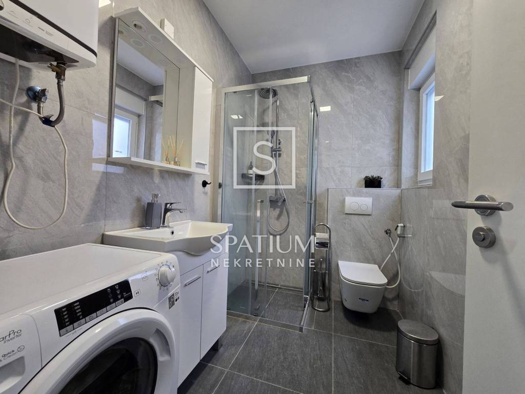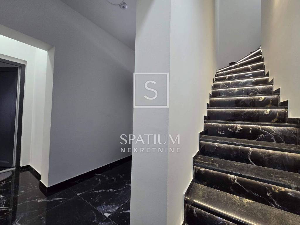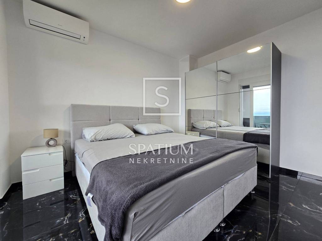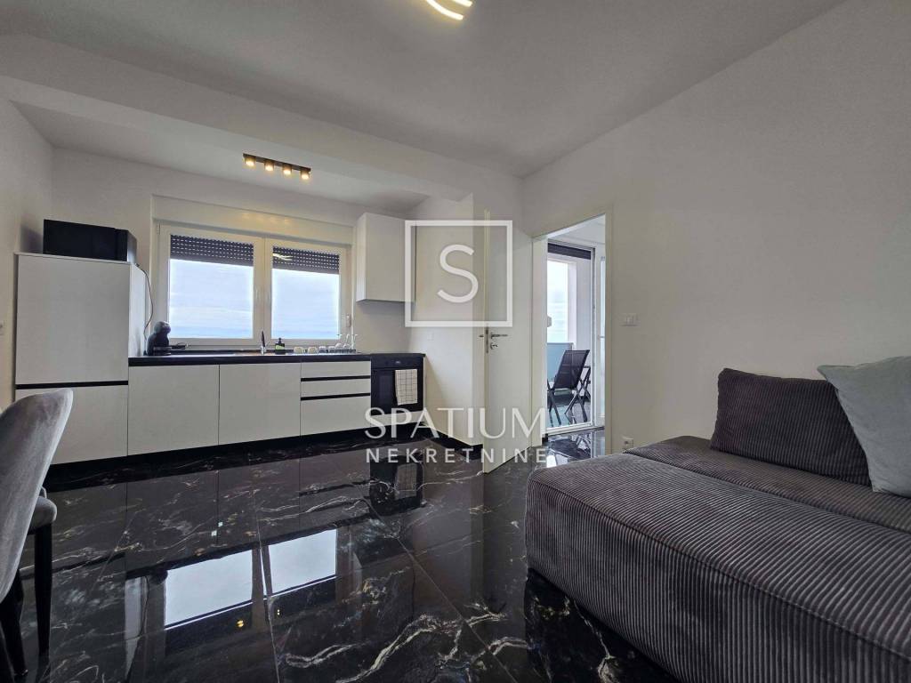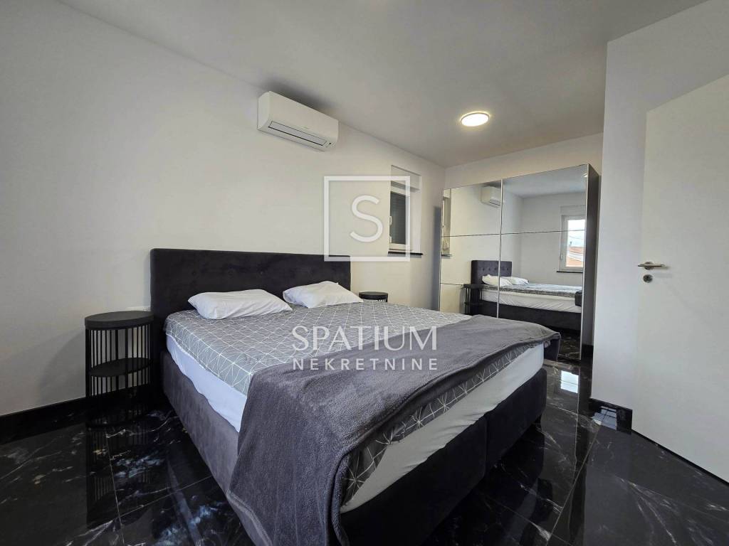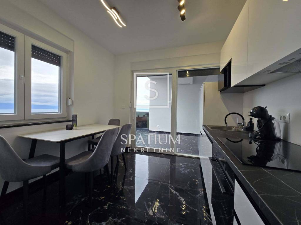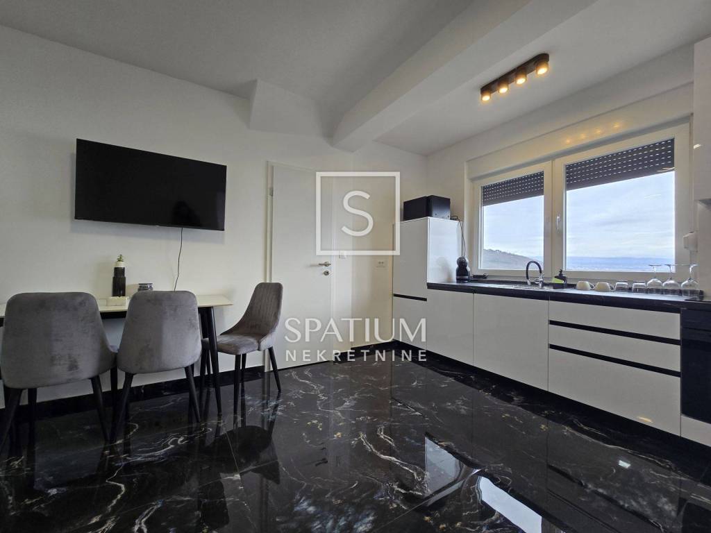 In Lovran, Oprić, bieten wir eine Wohnung in einem Neubau mit einer Gesamtfläche von 98,50 m² an. Neben der wunderschönen Aussicht und der ruhigen Lage in der Nähe aller Annehmlichkeiten besticht die Wohnung durch ihr zweistöckiges Raumkonzept. Es handelt sich um zwei separate Wohneinheiten: Im ersten Obergeschoss befindet sich eine Zweizimmerwohnung mit Wohnzimmer und Loggia, im zweiten Obergeschoss eine Einzimmerwohnung mit Küche, Essbereich und Zugang zu einer großen Loggia und Terrasse. Die Wohnungen sind möbliert und sofort bezugsfertig. Daikin-Klimaanlagen und Videoüberwachung sind installiert. Zwei Parkplätze stehen zur Verfügung. Die sorgfältig ausgewählte Außenbeleuchtung sorgt abends für ein besonderes Ambiente, wenn der Panoramablick auf die Kvarner Bucht außergewöhnlich ist. Nur wenige Autominuten vom Zentrum von Lovran und den ersten Stränden entfernt, ist diese Immobilie nicht nur ein ideales Sommerreiseziel, sondern auch ein angenehmer Wohnort.