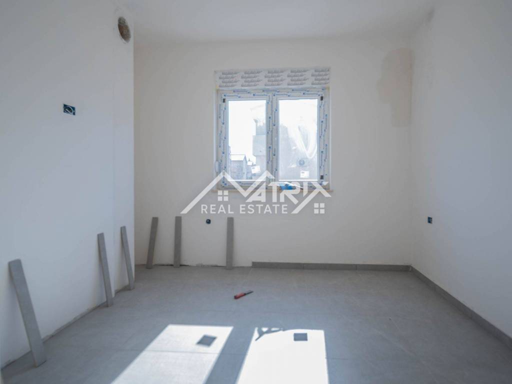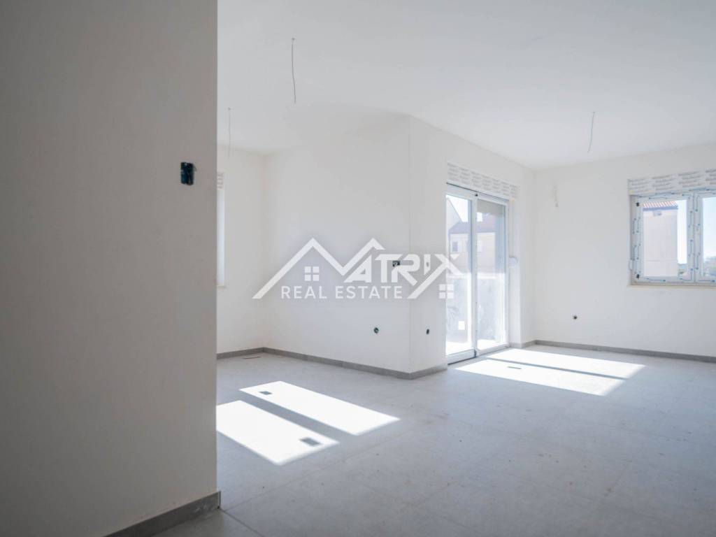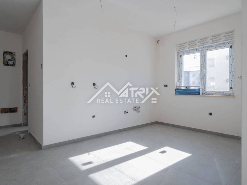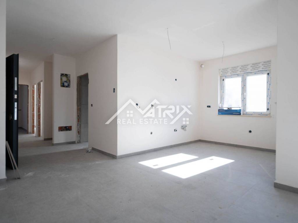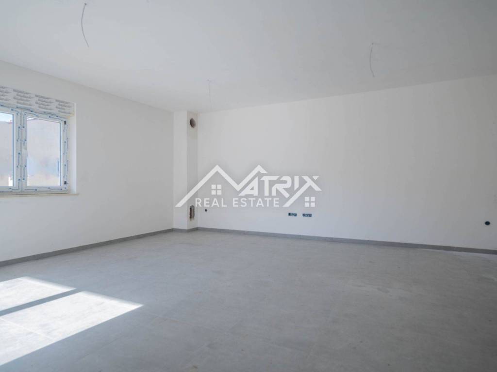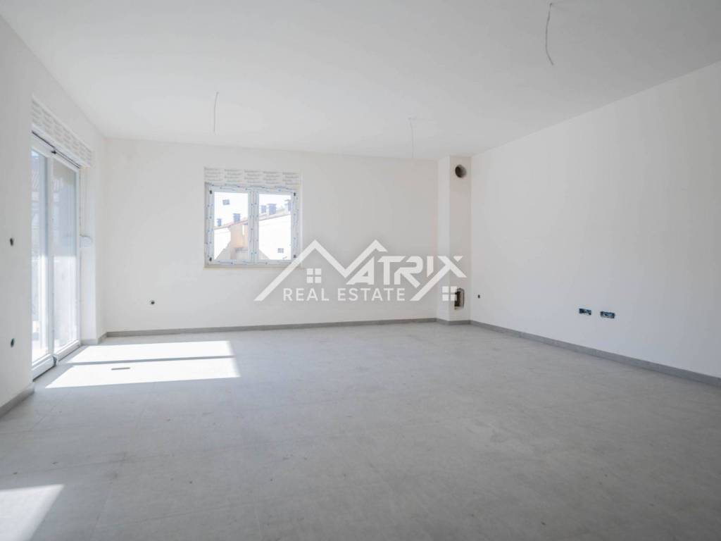 In einem ruhigen Teil von Pula, im Stadtteil Veldebek, wird in einer hochwertigen Neubauanlage eine 3-Zimmer-Wohnung mit 90 m² verkauft. Sie befindet sich im 1. Stock eines kleineren Wohngebäudes mit insgesamt 2 Stockwerken. Der Grundriss ist sehr alltagstauglich: Vom Eingangsflur gelangt man in den offenen Wohnbereich mit Wohnzimmer, Essbereich und Küche, von dem aus man auf den Balkon tritt – ideal zum Entspannen. Die Wohnung verfügt über drei Schlafzimmer; eines davon hat Zugang zu einem weiteren Balkon, was für mehr Licht und Privatsphäre sorgt. Das Badezimmer wird komplett mit Sanitäranlagen ausgestattet, zusätzlich sorgt ein Heizkörper für angenehme Wärme. Für die Beheizung der Wohnung ist ein Kaminzug vorgesehen (flexible Wahl des Heizsystems), und eine Klimaanlage gewährleistet Komfort das ganze Jahr über. Hochwertige PVC-Fenster und moderne Keramik runden den gepflegten, langlebigen Gesamteindruck ab. Die Wohnung ist sonnig und angenehm, der Einzug ist vor dem Sommer geplant – ideal für eine Familie oder als Investition zur Vermietung. Zur Wohnung gehören zwei Garagenstellplätze, ein großer Vorteil im Alltag. Die Lage in Veldebek bietet Nähe zu allen wichtigen Einrichtungen und eine gute Anbindung an den Rest der Stadt – ruhig, aber dennoch praktisch.