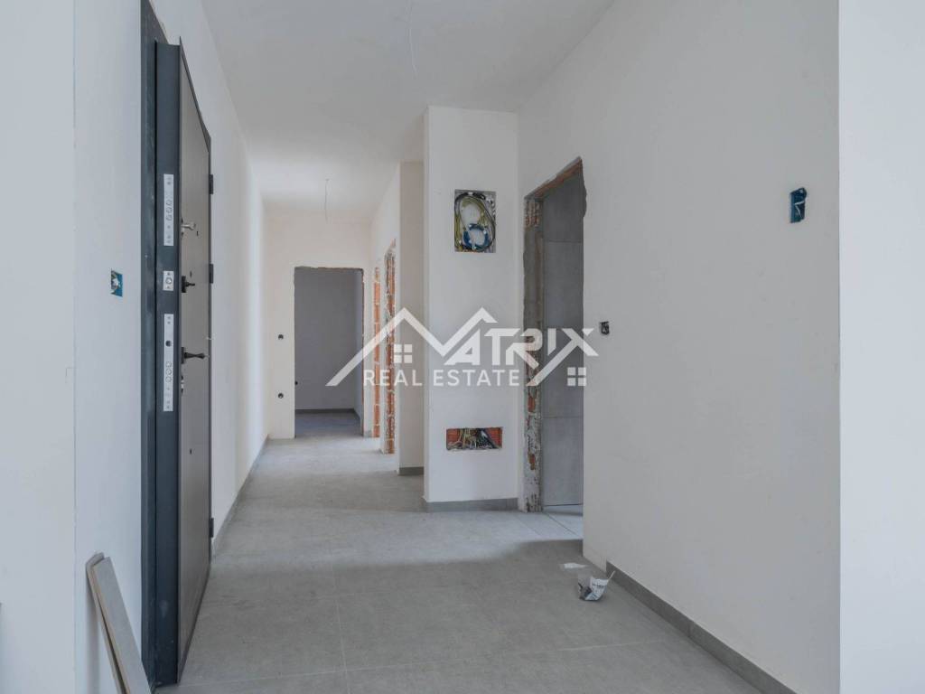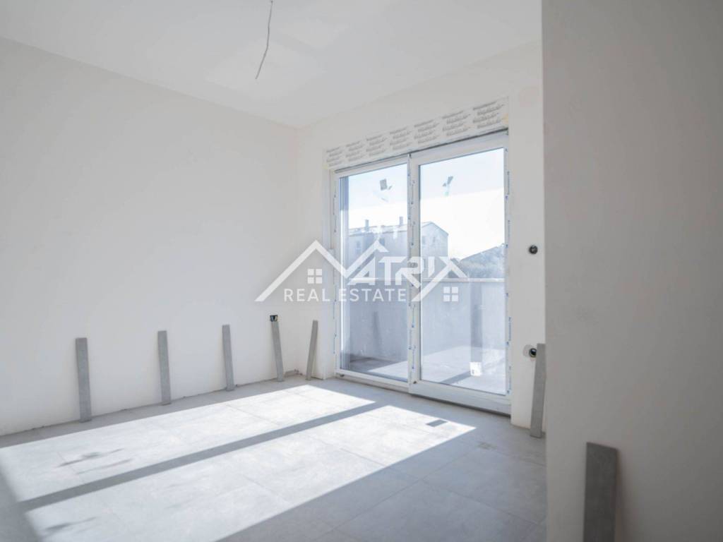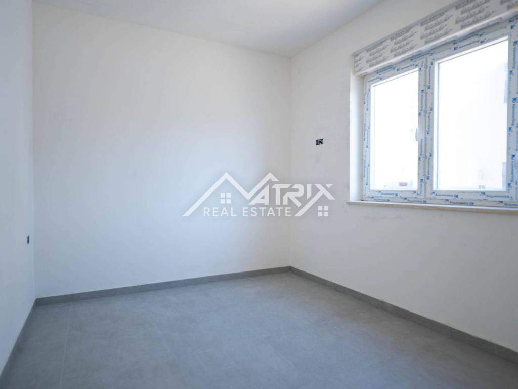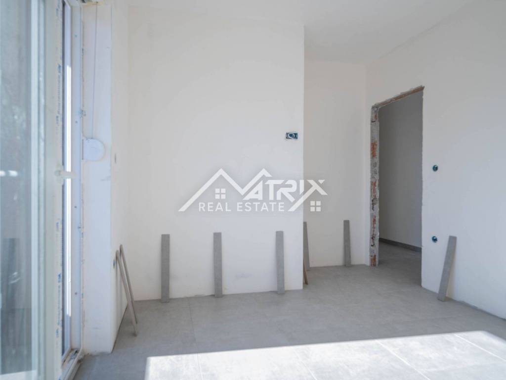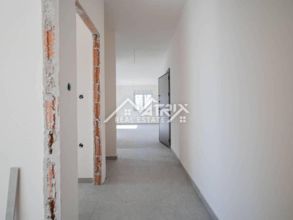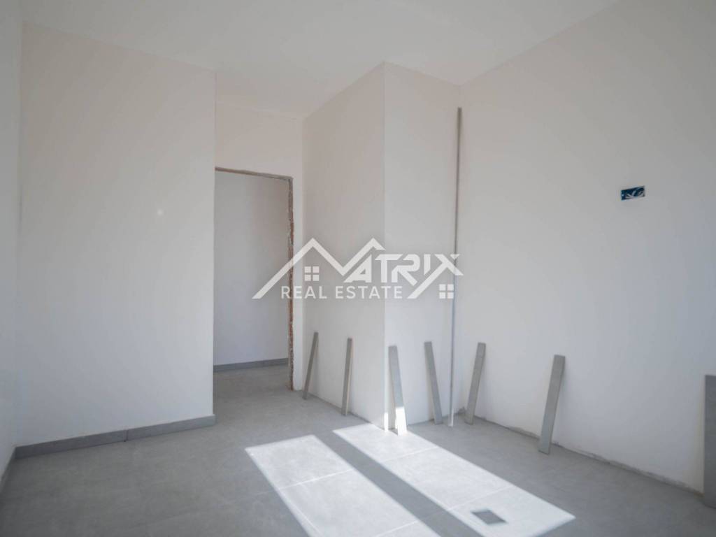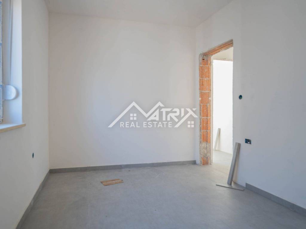 In einem ruhigen Teil von Pula, im Stadtteil Veldebek, wird in einer hochwertigen Neubauanlage eine 3-Zimmer-Wohnung mit 90 m² verkauft. Sie befindet sich im 1. Stock eines kleineren Wohngebäudes mit insgesamt 2 Stockwerken. Der Grundriss ist sehr alltagstauglich: Vom Eingangsflur gelangt man in den offenen Wohnbereich mit Wohnzimmer, Essbereich und Küche, von dem aus man auf den Balkon tritt – ideal zum Entspannen. Die Wohnung verfügt über drei Schlafzimmer; eines davon hat Zugang zu einem weiteren Balkon, was für mehr Licht und Privatsphäre sorgt. Das Badezimmer wird komplett mit Sanitäranlagen ausgestattet, zusätzlich sorgt ein Heizkörper für angenehme Wärme. Für die Beheizung der Wohnung ist ein Kaminzug vorgesehen (flexible Wahl des Heizsystems), und eine Klimaanlage gewährleistet Komfort das ganze Jahr über. Hochwertige PVC-Fenster und moderne Keramik runden den gepflegten, langlebigen Gesamteindruck ab. Die Wohnung ist sonnig und angenehm, der Einzug ist vor dem Sommer geplant – ideal für eine Familie oder als Investition zur Vermietung. Zur Wohnung gehören zwei Garagenstellplätze, ein großer Vorteil im Alltag. Die Lage in Veldebek bietet Nähe zu allen wichtigen Einrichtungen und eine gute Anbindung an den Rest der Stadt – ruhig, aber dennoch praktisch.