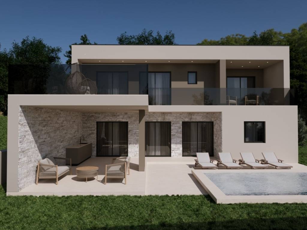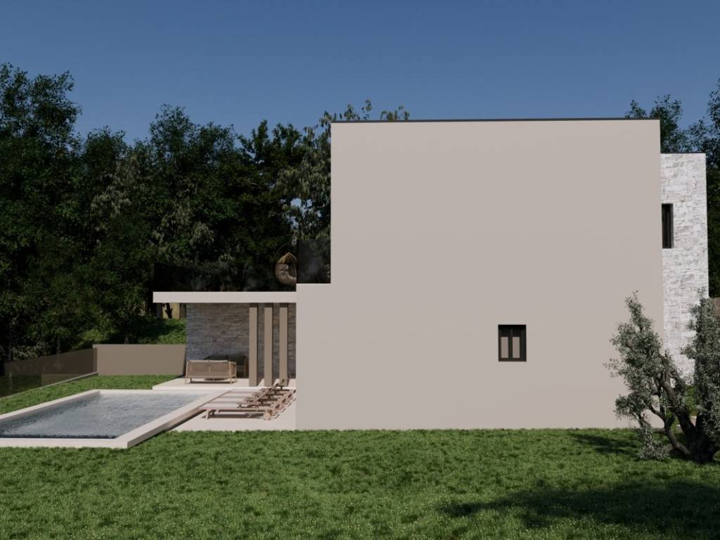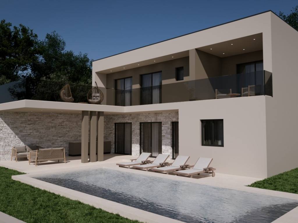 In ruhiger und attraktiver Lage nahe Rovinj befindet sich diese luxuriöse, modern gestaltete Villa. Sie bietet die perfekte Balance aus Privatsphäre, Komfort und der Nähe zu einer der begehrtesten Städte Istriens. Die Villa liegt auf einem 640 m großen Grundstück, die Wohnfläche beträgt 250 m. Modernes Design, funktionale Raumaufteilung und ein angenehmes Wohnklima zu jeder Jahreszeit zeichnen sie aus. Der offene Wohnbereich umfasst ein geräumiges Wohnzimmer mit angrenzender Küche und Essbereich, der durch große Glaswände mit einer überdachten Terrasse verbunden ist. Vom Wohnbereich aus genießt man den Blick auf den angelegten Garten und den 32 m großen Außenpool ideal zum Entspannen und geselligen Beisammensein in den warmen Sommermonaten. Die Villa verfügt über drei geräumige Schlafzimmer, jeweils mit eigenem Bad, die ein hohes Maß an Privatsphäre und Komfort gewährleisten. Zusätzlich gibt es ein Gäste-WC und einen Technikraum.