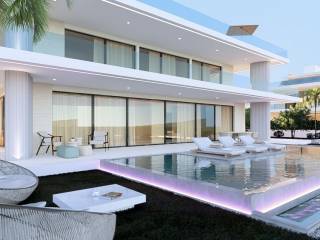 Das Erdgeschoss besticht durch Eleganz und Weite. Es vereint eine moderne Küche, ein Esszimmer und ein Wohnzimmer mit direktem Zugang zur großen Terrasse und dem mediterranen Flair des Außenbereichs. Ebenfalls auf dieser Etage befindet sich ein Entspannungs- und Erholungsbereich mit Spielzimmer, einem voll ausgestatteten Fitnessraum mit Sauna und Whirlpool sowie Dusche und WC. Eine Innentreppe mit Glasgeländer unterstreicht das moderne Design und führt in den ersten Stock mit vier geräumigen Schlafzimmern, jeweils mit eigenem Bad und Zugang zu einem überdachten Balkon mit freiem Meerblick. Im ersten Stock befindet sich außerdem ein praktischer Waschraum.